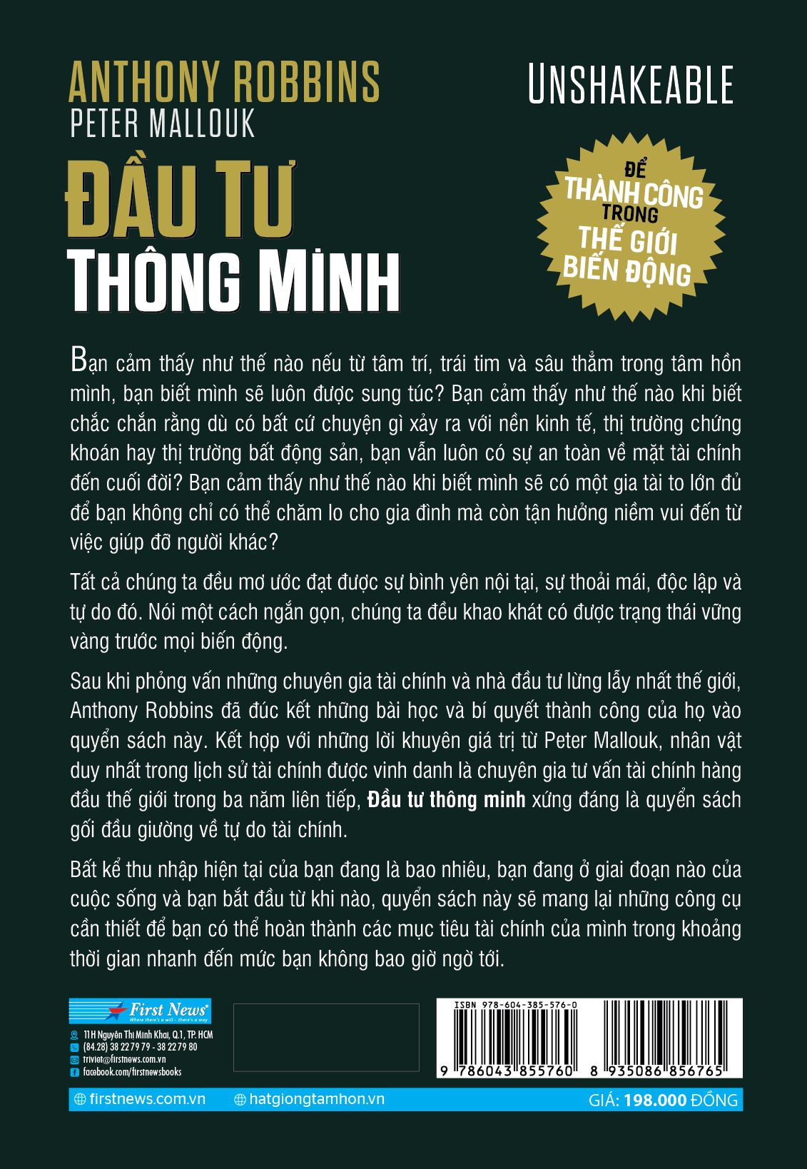 Cùng với “Đường đến tự do” (The Path), quyển sách này nằm trong bộ đôi tác phẩm của Anthony Robbins về đề tài phát triển bản thân thông qua tự do tài chính. Trong “Đầu tư thông minh”, tác giả đã giới thiệu những ý kiến sâu sắc từ những nhân vật quan trọng nhất trong giới đầu tư như Warrant Buffet và giám đốc quỹ tài trợ Yale David Swensen. Cả Warren và David đều nhấn mạnh rằng quỹ chỉ số là cách tốt nhất để các nhà đầu tư tối đa hóa cơ hội đầu tư thành công. Và quyển sách này sẽ giúp thông điệp đó đến được với nhiều nhà đầu tư hơn nữa.