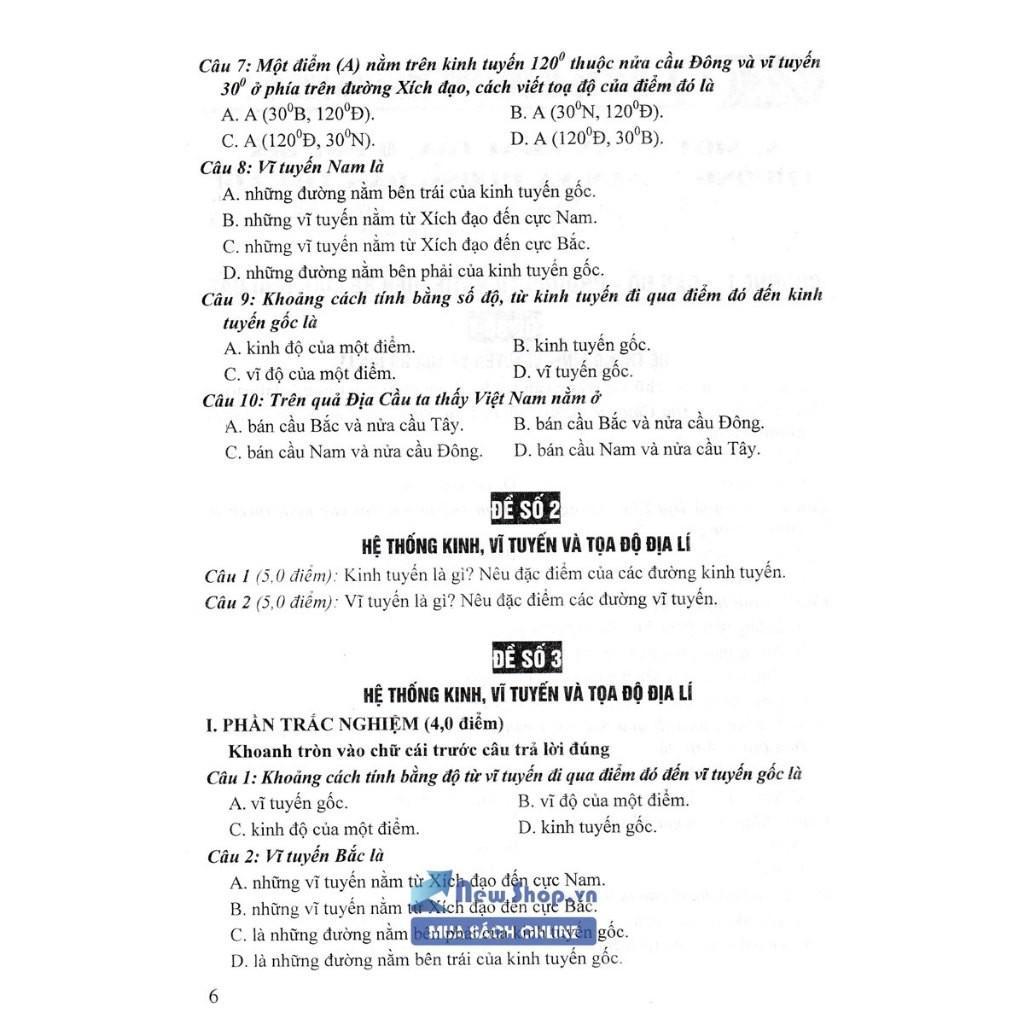 Để giúp các em có tài liệu thực hành các dạng đề trong quá trình học bài, tự ôn tập để chuẩn bị cho các kì kiểm tra, chúng tôi biên soạn cuốn Đề Kiểm Tra Đánh Giá Địa Lí Lớp 6 (Bám Sát SGK Chân Trời Sáng Tạo & Kết Nối Tri Thức Với Cuộc Sống). Sách được viết dựa vào chương trình sách giáo khoa trung học cơ sở - Địa lí 6 (SGK “Chân trời sáng tạo” và “Kết nối tri thức với cuộc sống”).