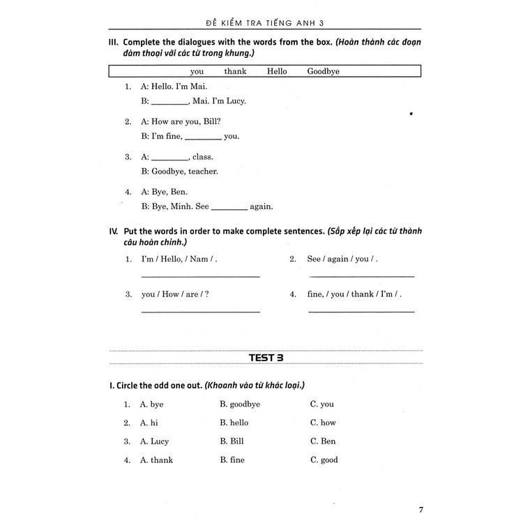 Cuốn sách Đề Kiểm Tra Tiếng Anh 3 - Có Đáp Án (Biên Soạn Theo Chương Trình GDPT Mới) này là một tài liệu cần thiết cho các em trong việc ôn tập và củng cố kiến thức để chuẩn bị cho các bài kiểm tra đánh giá thường xuyên và các bài kiểm tra, cuối kì môn Tiếng Anh lớp 3.