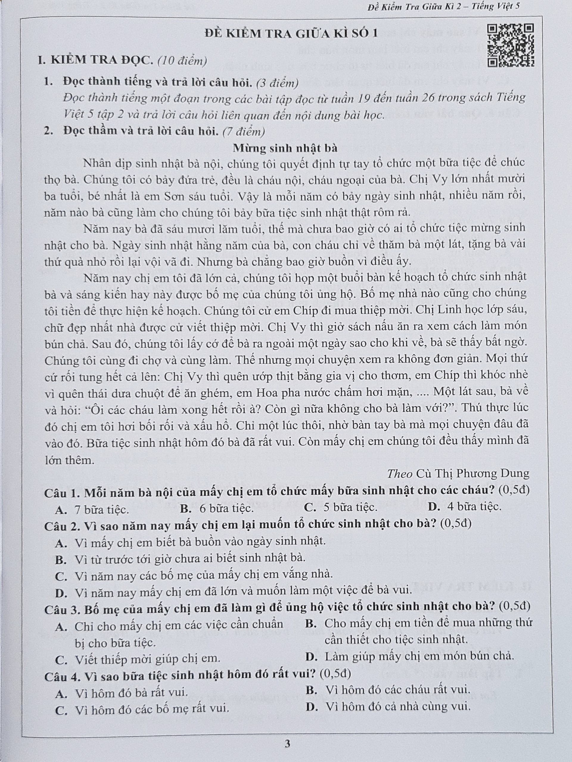 ✨Sách - Đề kiểm tra Tiếng Việt 5 học kì I