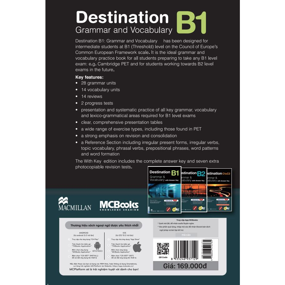 Destination B1: Grammar & Vocabulary được thiết kế dành cho những người chuẩn bị thi B1 - FCE. Cuốn sách tập trung vào những kiến thức ngữ pháp, từ vựng tiếng Anh thường xuyên sử dụng trong bài thi B1, thích hợp dành cho người học ở trình độ Intermediate, Upper Intermediate hoặc Advanced. Tài liệu trong sách dựa theo mức trình độ B1 chuẩn khung châu Âu.