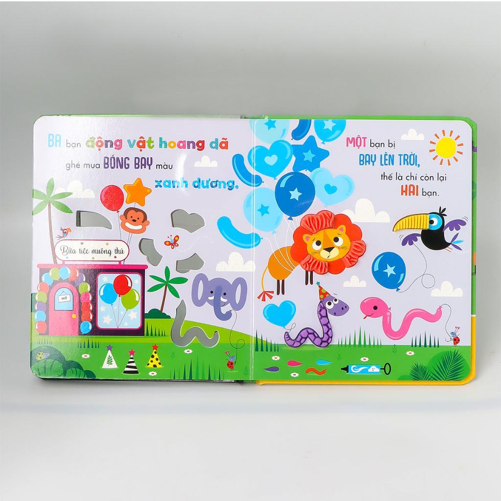 Bên cạnh đó, cha mẹ có thể vui chơi và tương tác cùng các bé qua những câu chuyện trong sách, dạy bé cách đếm số và nhận biết các loài động vật.