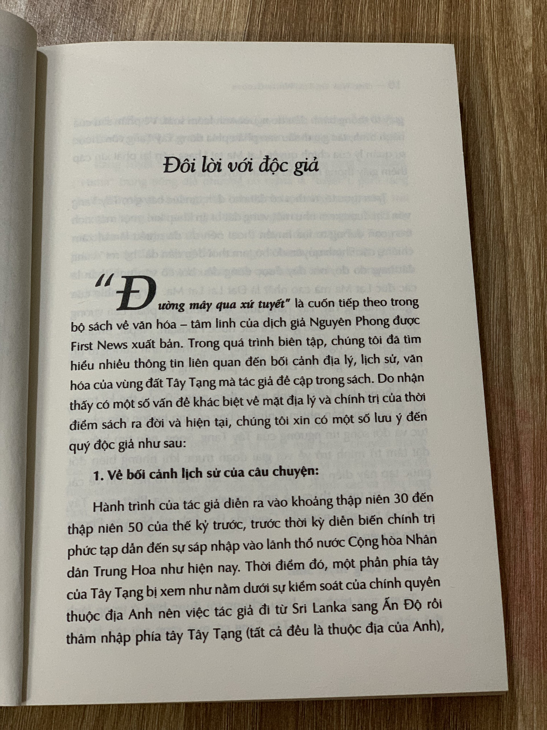 Đường Mây Qua Xứ Tuyết (“The Way of the White Clouds”) ghi lại những điều Anagarika Govinda chứng kiến trong thời gian du hành ở Tây Tạng. Hành trình của tác giả diễn ra vào khoảng thập niên 30 đến thập niên 50 của thế kỷtrước, trước thời kỳ diễn biến chính trị phức tạp dẫn đến sự sáp nhập vào lãnh thổ nước Cộng hòa Nhân dân Trung Hoa như hiện nay. Thời điểm đó, một phần phía tây của Tây Tạng bị xem như nằm dưới sự kiểm soát của chính quyền thuộc địa Anh nên việc tác giả đi từ Sri Lanka sang Ấn Độ rồi thâm nhập phía tây Tây Tạng (tất cả đều là thuộc địa của Anh), giấy tờ thông hành đều do người Anh kiểm soát. Về phần sau của hành trình, tác giả đi sâu vào phần phía đông Tây Tạng vốn thuộc sự quản lý của chính quyền Lạt Ma tại Lhasa nên lại phải xin cấp thêm giấy thông hành từ chính quyền này.