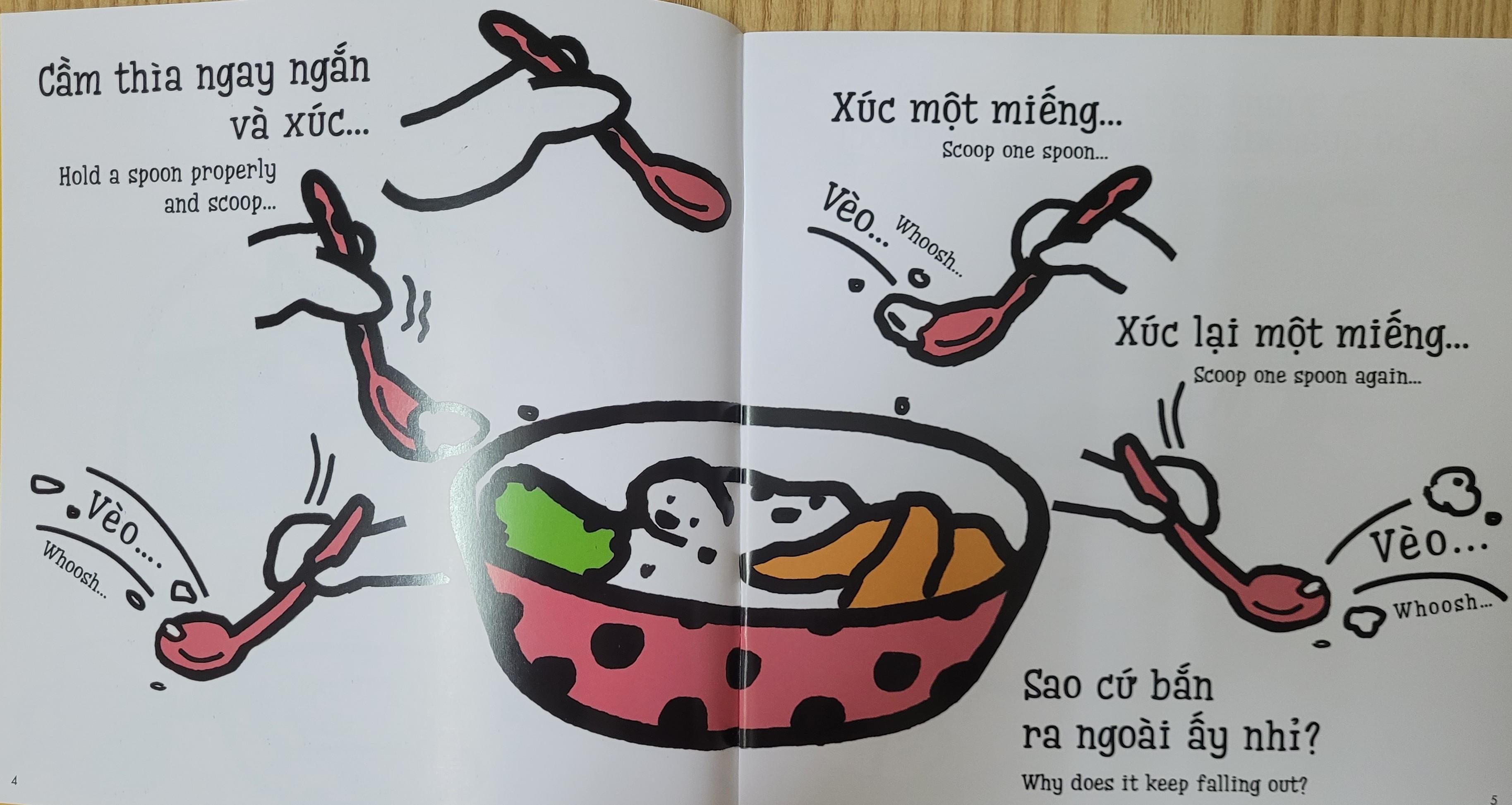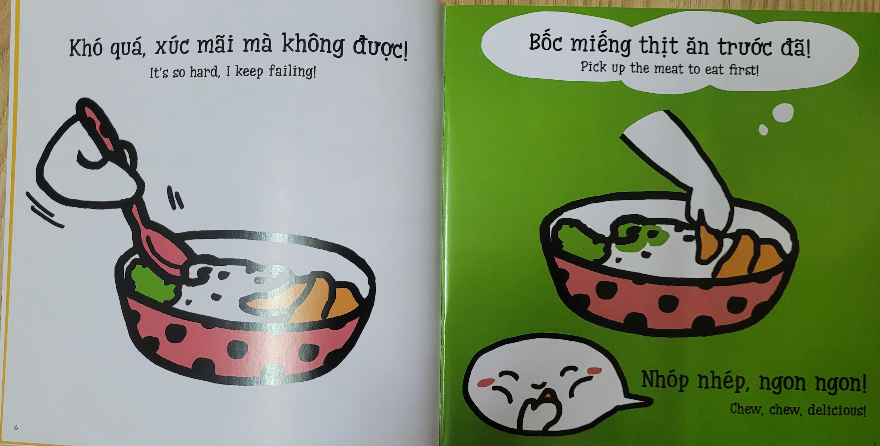 ✨Sách Ehon Miu Miu Tự Lập Phần 1 Song Ngữ - Xúc Cơm Ăn