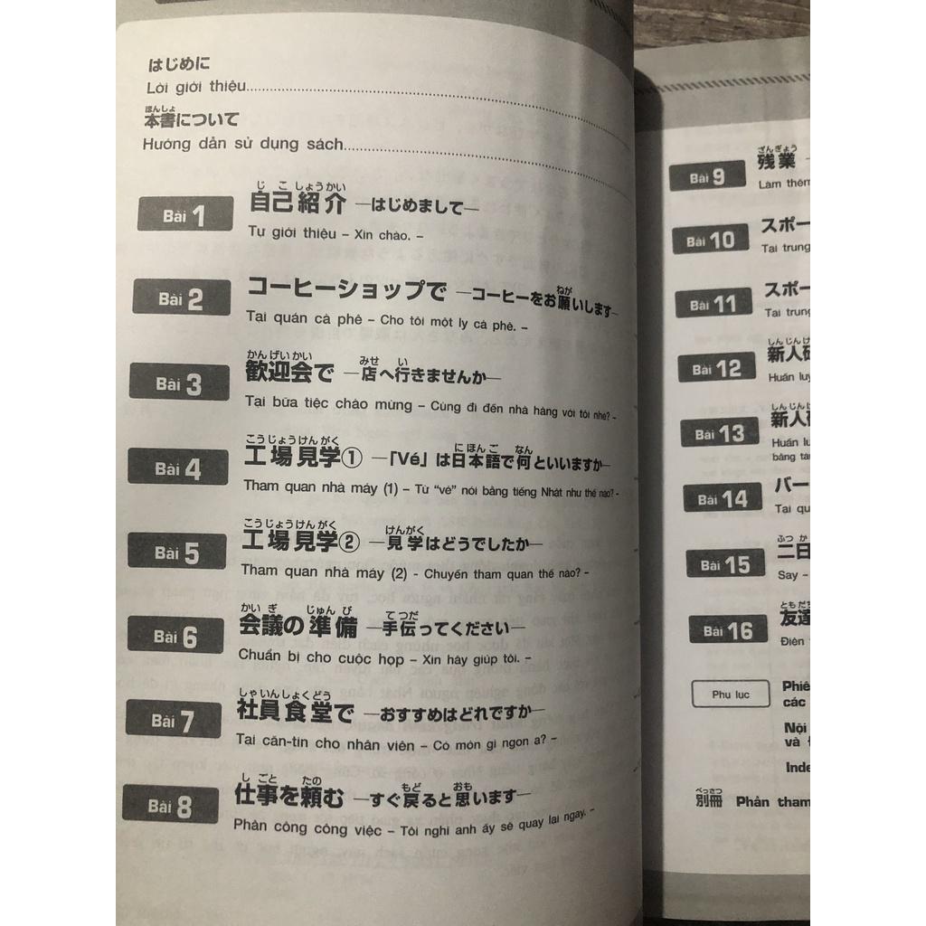 Mua tại TiktokNhật Bản là quốc gia đứng đầu về tổng vốn ODA đầu tư vào Việt Nam. Làn sóng đầu tư mạnh mẽ của các doanh nghiệp Nhật Bản trong vài năm trở lại đây đã khiến cho nhu cầu nhân lực biết tiếng Nhật đã tăng lên đáng kể. Ngày nay, tiếng Nhật là một trong số những ngôn ngữ quan trọng giúp các bạn trẻ gia tăng khả năng cạnh tranh và dễ dàng kiếm việc với mức lương như ý. Tuy vậy, một trong những khó khăn của nhiều người khi học tiếng Nhật là tuy nắm vững ngữ pháp nhưng phản xạ không đủ nhanh, không tự tin sử dụng tiếng Nhật trong các tình huống và môi trường làm việc thực tế. Vì vậy, First News - Trí Việt trân trọng giới thiệu 2 cuốn sách thuộc bộ giáo trình Giao tiếp tiếng Nhật trong kinh doanh. Trong cuốn sách này, người học có thể luyện tập những mẫu câu thiết thực trong đời sống, có thể ứng dụng và giao tiếp hằng ngày bằng tiếng Nhật trong các tình huống thường gặp nơi công sở. Giáo trình Giao tiếp tiếng Nhật trong kinh doanh – Nihongo Express gồm 16 bài học, tập trung vào việc cung cấp các điểm ngữ pháp cơ bản, và câu nói thông dụng trong giao tiếp nơi công sở cùng hình ảnh minh họa phong phú, sinh động giúp người đọc dễ dàng hiểu được ngữ cảnh của các đoạn hội thoại. Cuốn sách bao gồm các phần: Đoạn hội thoại mẫu, bài luyện tập, điểm ngữ pháp, bài kiểm tra, phụ lục, sách tham khảo. Sách Giao tiếp tiếng Nhật trong kinh doanh được trình bày song ngữ Nhật – Việt và có phiên âm chữ Romaji. Sách có danh mục từ vựng giúp việc học có hệ thống và đính kèm đĩa CD-ROM chứa các Đoạn hội thoại mẫu, Luyện tập, Điểm ngữ pháp và Bài kiểm tra được đọc bởi người bản xứ giúp người học có thể tự học ngữ pháp tại nhà, luyện nghe hiểu và phát âm chuẩn như người Nhật. CD-ROM chứa tương đương bảy đĩa CD. Bộ sách được nhóm tác giả của Trung tâm giáo dục Quốc tế (IEC), Viện ngôn ngữ Tiếng Nhật Nichibei Kaiwa Gakuin (JLI) biên soạn, hiệu đính bởi Ths. Nguyễn Thu Hương – Nguyên Phó trưởng khoa Nhật Bản học – Trường ĐH KHXH & NV . BOX Viện ngôn ngữ Tiếng Nhật (JLI) được thành lập vào năm 1967 như một tổ chức thành viên của trung tâm giao lưu giáo dục quốc tế (IEC). JLI cung cấp các chươn trình đào tạo tiếng Nhật thiết thực cho nhiều môi trường sử dụng tiếng Nhật đa dạng, ở công sở cũng như trong cuộc sống hàng ngày. IEC, tổ chức sáng lập ra JLI, cũng đã đẩy mạnh giáo dục quốc tế và hiểu biết giữa các nền văn hóa từ năm 1948. Một trong các dự án phải kể đến của IEC là Cuộc thi Hùng biện tiếng Nhật Quốc tế (được phát sóng trên đài truyền hình NHK).
