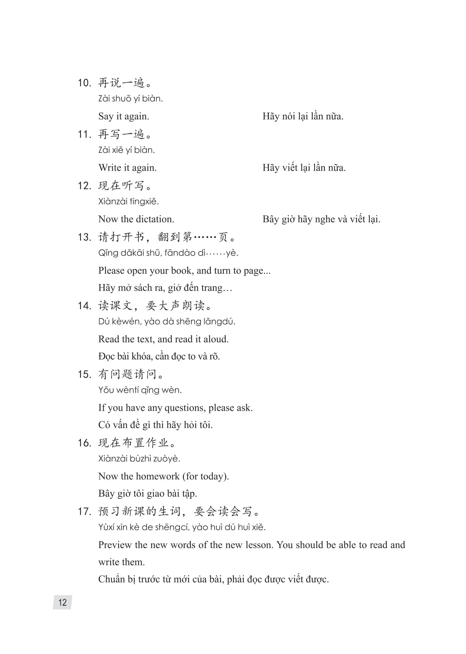 - Chú thích Phần chú thích trong giai đoạn ngữ âm chủ yếu giới thiệu kiến thức cơ bản về ngữ âm tiếng Hán. Còn ở giai đoạn ngữ pháp và mẫu câu, chủ yếu giới thiệu và giải thích một số kiến thức trọng điểm về ngôn ngữ và bối cảnh văn hóa Trung Quốc. Đối với những câu có điểm ngữ pháp xuất hiện trong bài khóa nhưng chưa được giải thích, hãy để sinh viên được hiểu nghĩa thông qua phần dịch nội dung chú thích.