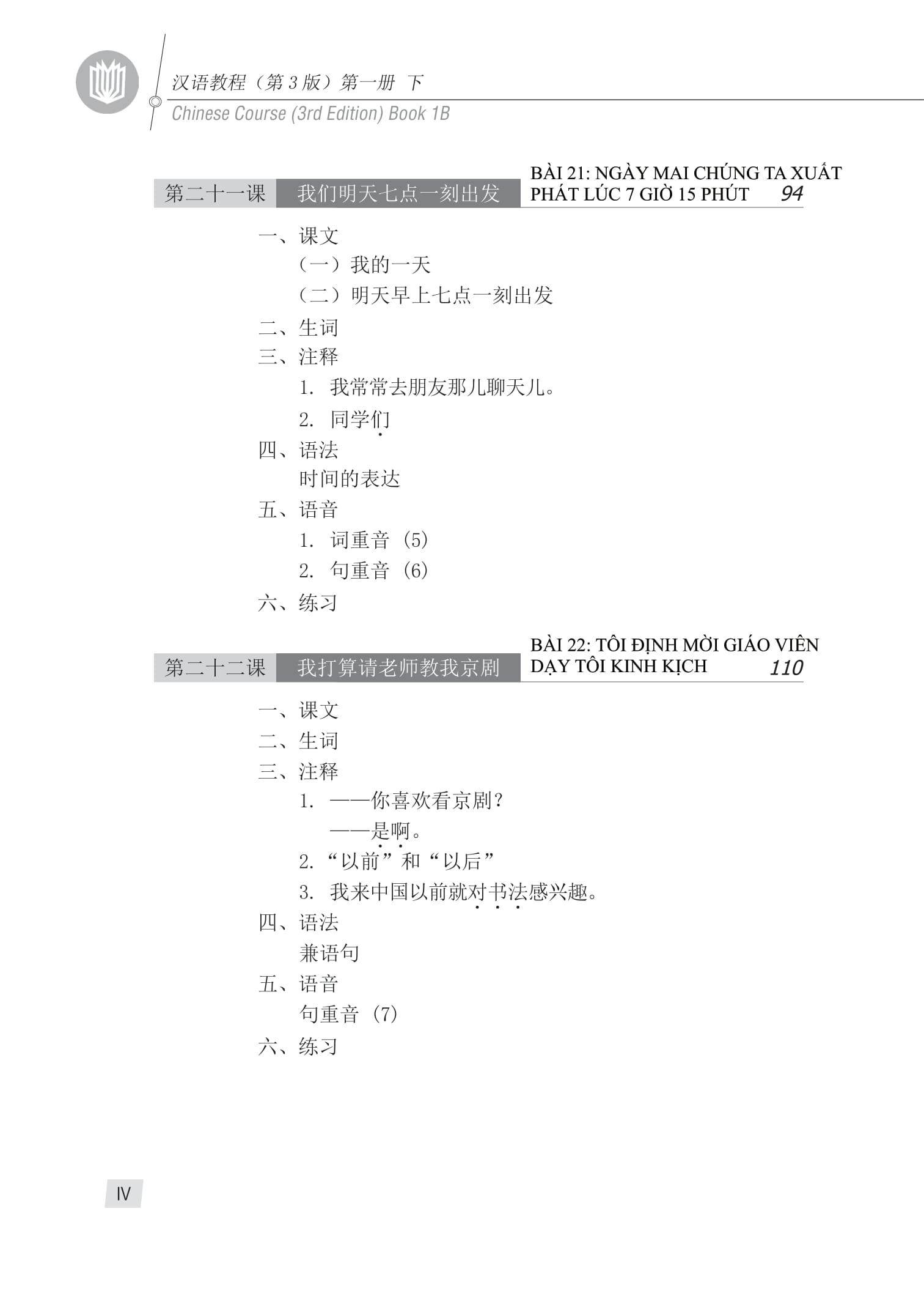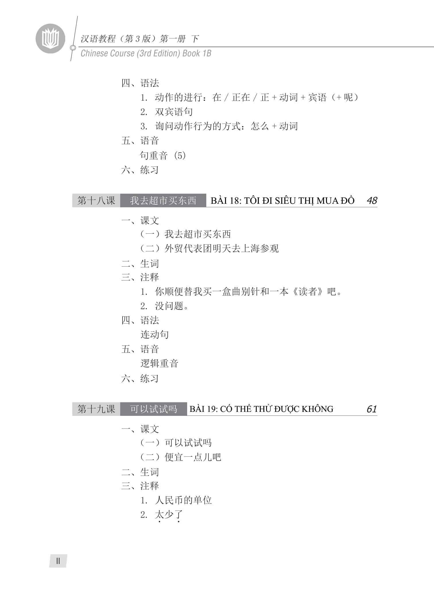 Giáo Trình Hán Ngữ 2 - Tập 1 - Quyển Hạ Các bài học trong “Giáo trình Hán ngữ 2 Tập 1 Quyển hạ phiên bản 3″ được thiết kế như sau: 1. Bài đọc, 2. Từ mới, 3. Chú thích, 4. Ngữ âm, Ngữ pháp, 5...