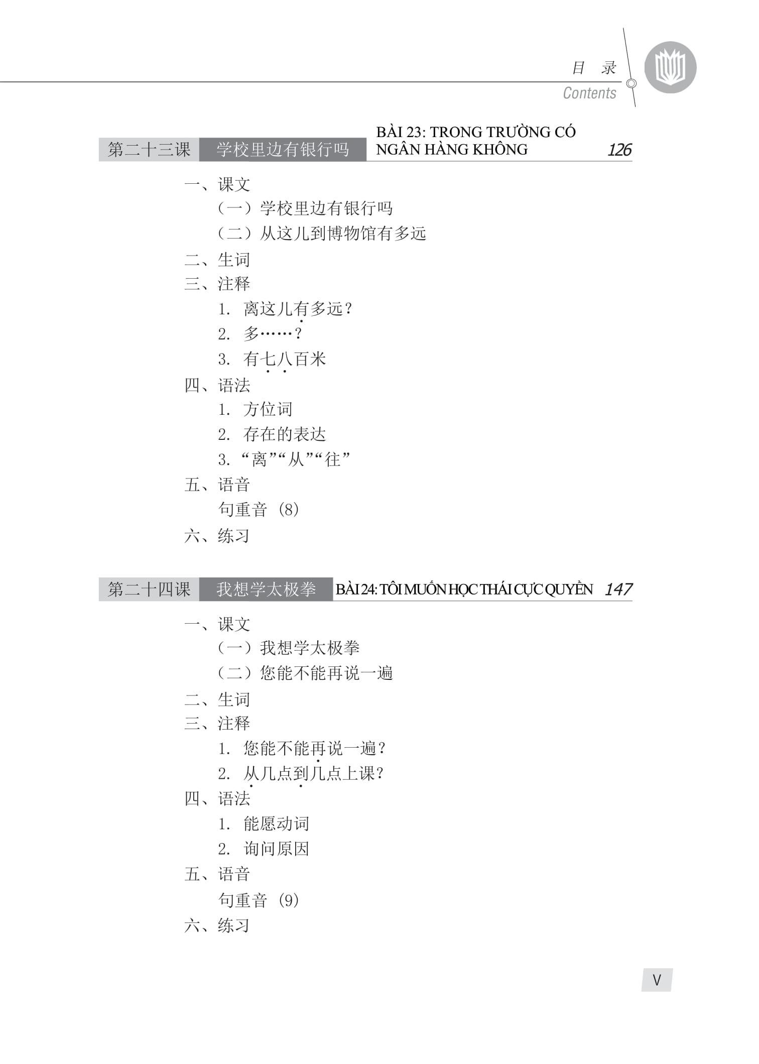 Phần chú thích trong giai đoạn ngữ âm chủ yếu giới thiệu kiến thức cơ bản về ngữ âm tiếng Hán. Còn ở giai đoạn ngữ pháp và mẫu câu, chủ yếu giới thiệu và giải thích một số kiến thức trọng điểm về ngôn ngữ và bối cảnh văn hóa Trung Quốc. Đối với những câu có điểm ngữ pháp xuất hiện trong bài khóa nhưng chưa được giải thích, hãy để sinh viên được hiểu nghĩa thông qua phần dịch nội dung chú thích.