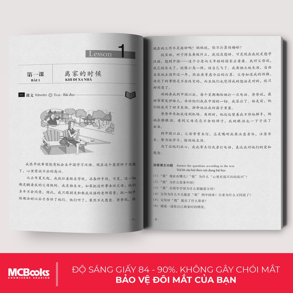 Các bài học trong “Giáo trình Hán ngữ 2 Tập 1 Quyển hạ phiên bản 3″ được Mcbooks thiết kế như sau: 1. Bài đọc, 2. Từ mới, 3. Chú thích, 4. Ngữ âm, Ngữ