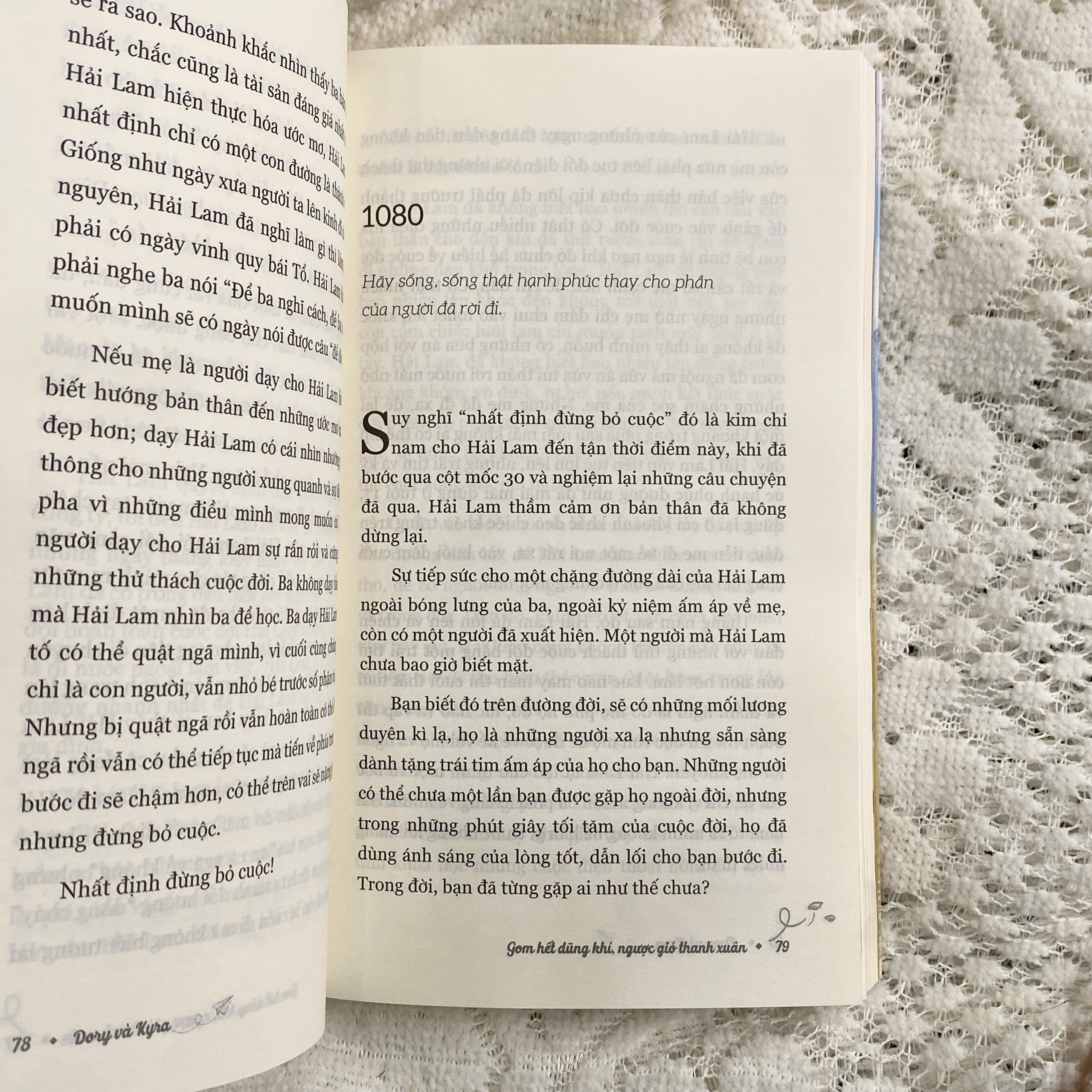 “Gom hết dũng khí, ngược gió thanh xuân” không chỉ là câu chuyện của một người, mà là câu chuyện của biết bao con người trẻ đang loay hoay với cuộc đời, đang bước đi giữa những hoang mang và giấc mơ còn dang dở. Cuốn sách như một người bạn đồng hành, dịu dàng vỗ về bạn những lúc yếu lòng, nhưng cũng đủ mạnh mẽ để nhắc bạn rằng: hãy đứng lên, hãy dũng cảm, vì thế giới này vẫn còn rất nhiều điều đẹp đẽ đang chờ bạn phía trước.
