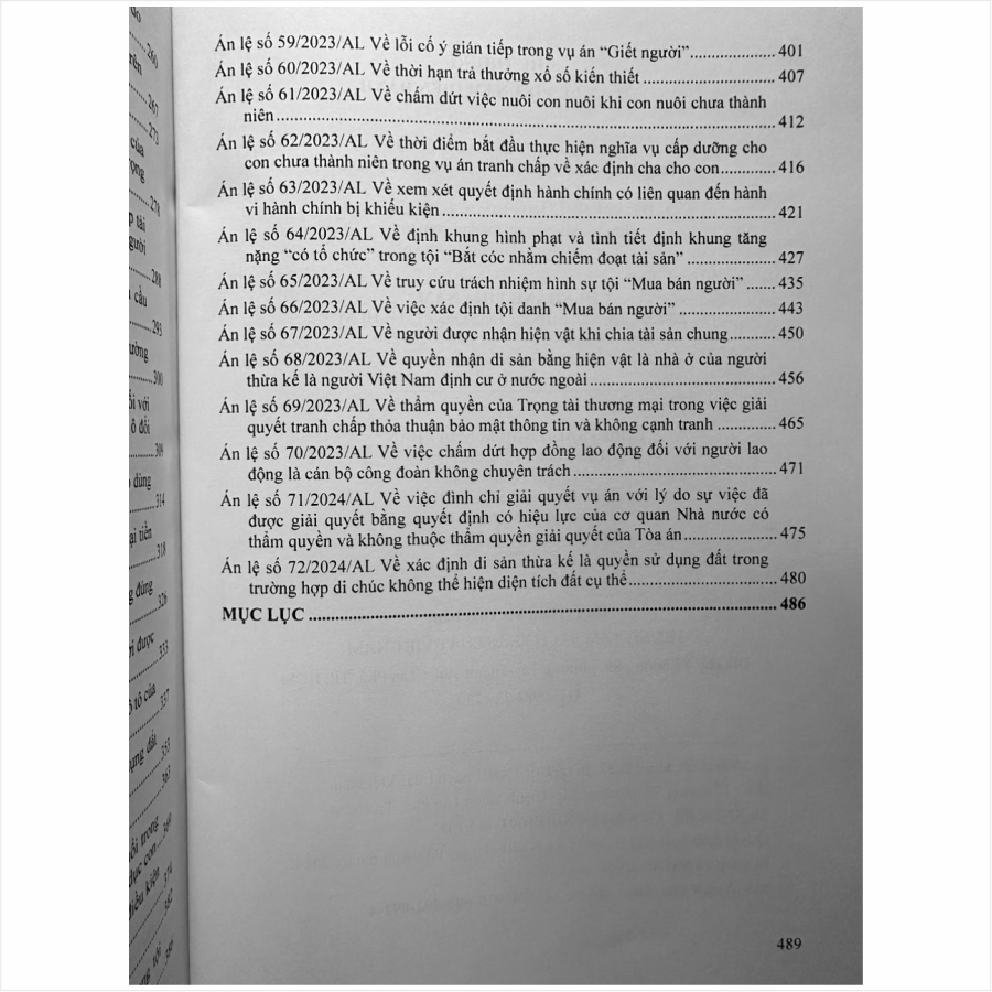 – Án lệ số 65/2023/AL về truy cứu trách nhiệm hình sự tội “Mua bán người”;