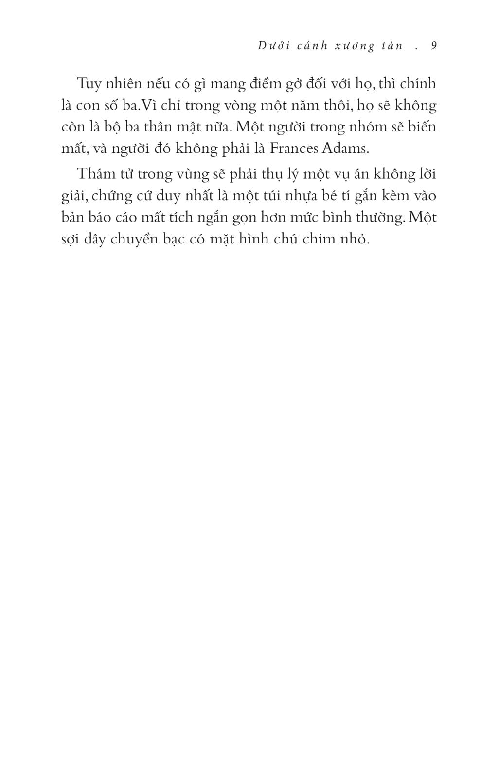 Một quẻ bói được đưa ra vào năm 1965: Tương lai ngươi đầy những xương tàn. Ngươi phải đi dần vào cái chết ngay khi một tay nắm giữ vương hậu. Cần có ý tứ với loài chim, bởi nó sẽ phản bội ngươi. Kể từ đó không còn đường lui lại. Nhưng những người con gái là chìa khóa công lý, phải tìm đúng một người thích hợp rồi giữ cạnh bên. Mọi dấu hiệu chỉ thẳng vào vụ án mạng của ngươi. Bị ám ảnh bởi quẻ bói này, Frances Adams đã không ngừng thu thập bí mật của tất cả người dân Castle Knoll, nhằm tìm ra kẻ sát hạt m.ình trước cả khi vụ án xảy ra. Và Frances Adams rồi cũng chết ở tuổi bảy mươi; người cháu họ, Annie Adams, được mời đến dinh tự Gravesdown để giải quyết vụ án mạng này.