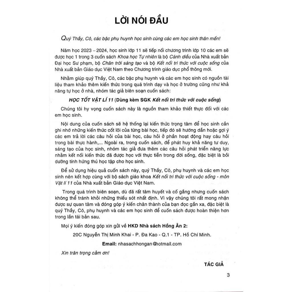 Nhằm giúp quý Thầy, Cô, các bậc phụ huynh và các em học sinh có nguồn tài liệu tham khảo thêm kiến thức trong quá trình dạy và học ở trường cũng như khả năng tự học ở nhà, nhóm tác giả biên soạn cuốn sách: HỌC TỐT VẬT LÍ 11 (Dùng kèm SGK Kết nối tri thức với cuộc sống)