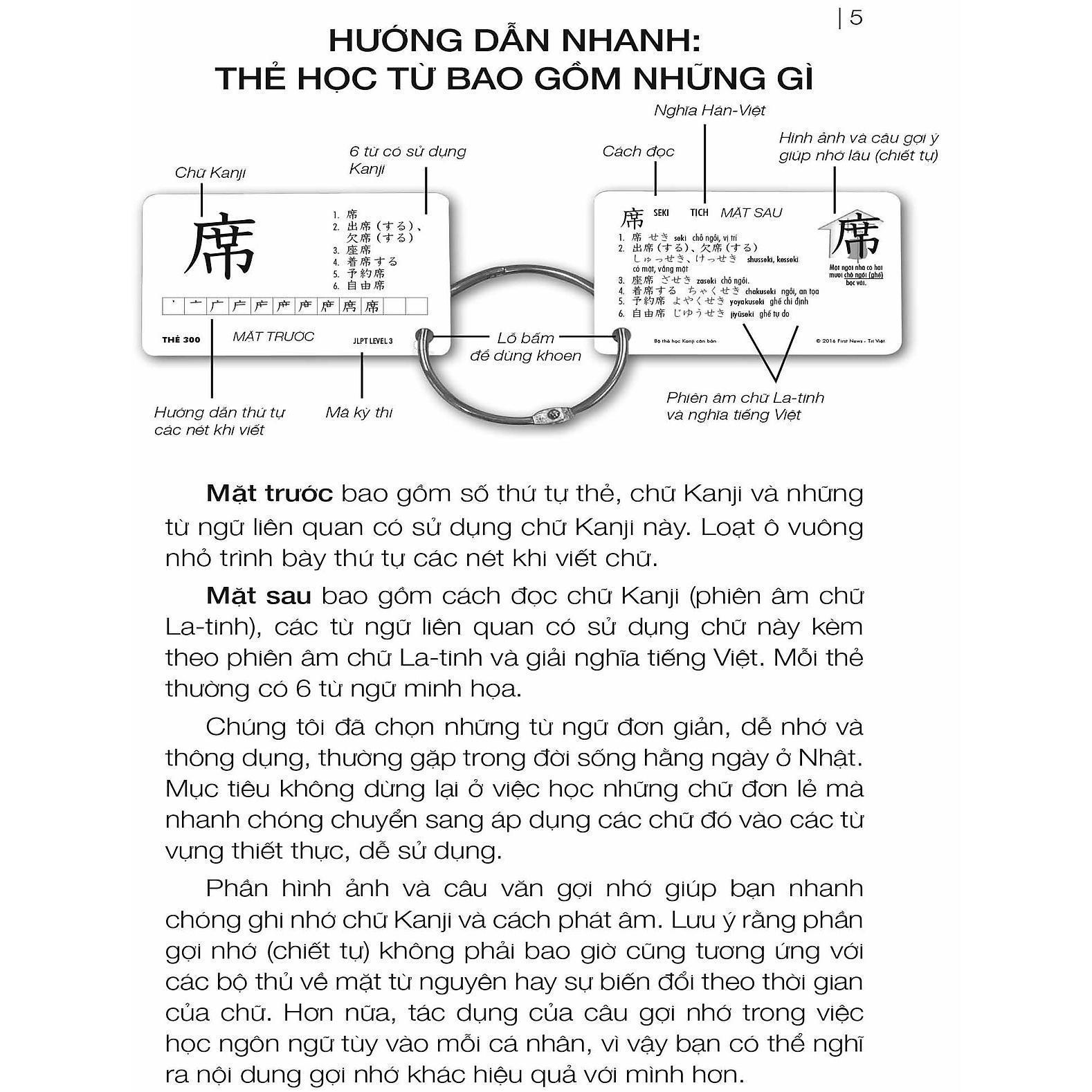 Kỳ thi Năng lực Nhật Ngữ (JLPT) là kỳ thi chứng nhận trình độ tiếng Nhật uy tín và phổ biến nhất đối với những người nước ngoài theo học tiếng Nhật tại 68 vùng lãnh thổ trên thế giới. Để đáp ứng nhu cầu ngày càng cao của người học tiếng Nhật tại Việt Nam, Bộ Thẻ học tiếng Nhật hiệu quả Japanese Kanji Flashcards được chọn lọc và thiết kế dành riêng cho việc học và ghi nhớ các chữ Kanji theo các cấp độ của Kỳ thi năng lực Nhật Ngữ.