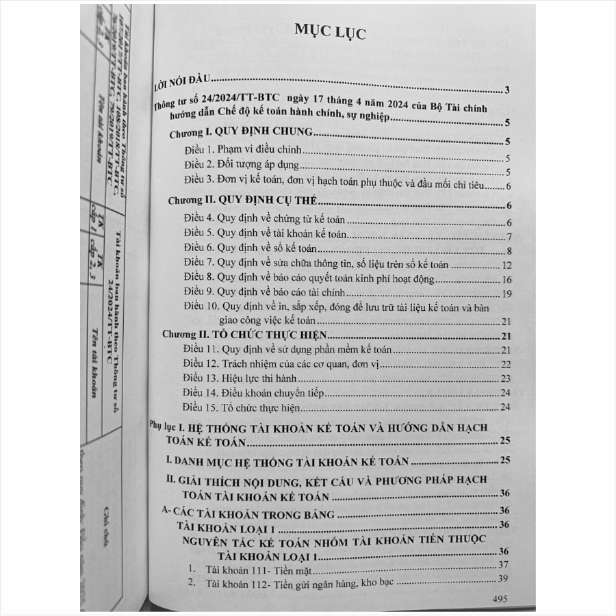 - Toàn bộ sách bìa mềm khổ lớn 19 x 27 cm phân phối bởi Nhà sách Nam Việt đều được bọc sách Plastic MIỄN PHÍ và xuất hóa đơn điện tử đầy đủ, nhanh chóng. …/… Lời giới thiệu: Ngày 17 tháng 4 năm 2024, Bộ Tài chính ban hành Thông tư số 24/2024/TT-BTC hướng dẫn Chế độ kế toán hành chính, sự nghiệp gồm: chứng từ kế toán, tài khoản kế toán, sổ kế toán, báo cáo quyết toán kinh phí hoạt động, báo cáo tài chính; quy trình in, sắp xếp, đóng để lưu trữ tài liệu kế toán của các đơn vị. Đối tượng được áp dụng cho các đơn vị kế toán, bao gồm: Cơ quan nhà nước (trừ Ủy ban nhân dân xã, phường, thị trấn sử dụng ngân sách cấp xã); Đơn vị sự nghiệp công lập; Tổ chức chính trị; tổ chức chính trị – xã hội; Mặt trận Tổ quốc Việt Nam và tổ chức, cơ quan, đơn vị khác là đơn vị sử dụng ngân sách nhà nước; Tổ chức, cơ quan, đơn vị thực hiện cơ chế tài chính của đơn vị sự nghiệp công lập. Nhằm phổ biến đến Quý Cơ quan, Đơn vị và Quý khách hàng thân thiết nắm bắt kịp thời những quy định mới nêu trên. Nhà sách Nam Việt xin trân trọng giới thiệu cuốn sách: HƯỚNG DẪN HƯỚNG DẪN CHẾ ĐỘ KẾ TOÁN HÀNH CHÍNH, SỰ NGHIỆP theo Thông tư số 24/2024/TT-BTC ngày 17 tháng 4 năm 2024 của Bộ Tài chính .../... Nội dung cuốn sách gồm có các phụ lục sau: Phụ lục I. HỆ THỐNG TÀI KHOẢN KẾ TOÁN VÀ HƯỚNG DẪN HẠCH TOÁN KẾ TOÁN; Phụ lục II. HỆ THỐNG SỔ KẾ TOÁN; Phụ lục III. HỆ THỐNG BÁO CÁO QUYẾT TOÁN KINH PHÍ HOẠT ĐỘNG; Phụ lục IV. HỆ THỐNG BÁO CÁO TÀI CHÍNH Phụ lục V. QUY TRÌNH IN, SẮP XẾP, ĐÓNG ĐỂ LƯU TRỮ TÀI LIỆU KẾ TOÁN; ...//... Cảm ơn các bạn đã ghé thăm shop Nhà sách Nam Việt ! Sách HƯỚNG DẪN HƯỚNG DẪN CHẾ ĐỘ KẾ TOÁN HÀNH CHÍNH, SỰ NGHIỆP theo Thông tư số 24/2024/TT-BTC ngày 17 tháng 4 năm 2024 của Bộ Tài chính Sách HƯỚNG DẪN HƯỚNG DẪN CHẾ ĐỘ KẾ TOÁN HÀNH CHÍNH, SỰ NGHIỆP theo Thông tư số 24/2024/TT-BTC ngày 17 tháng 4 năm 2024 của Bộ Tài chính