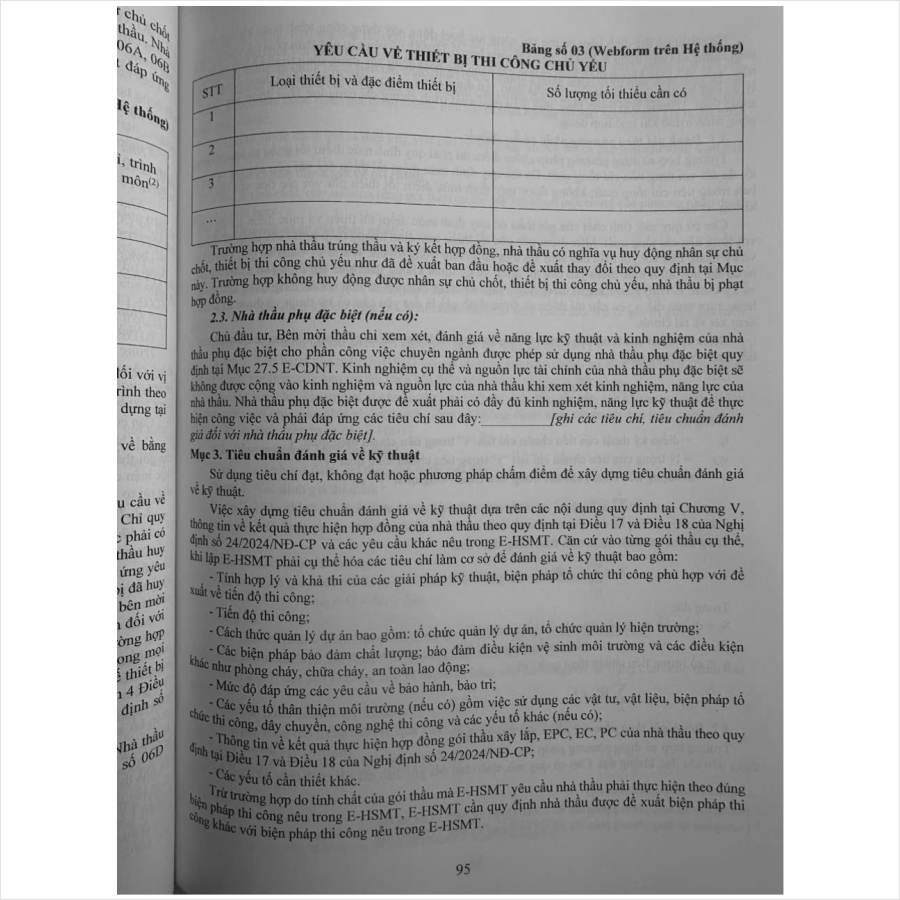 - Toàn bộ sách bìa mềm khổ lớn 20 x 28 cm phân phối bởi Nhà sách Nam Việt đều được bọc sách Plastic MIỄN PHÍ và xuất hóa đơn điện tử đầy đủ, nhanh chóng. …/… Lời giới thiệu: Ngày 17/11/2024, Bộ Kế hoạch và Đầu tư đã ban hành Thông tư số 22/2024/TT-BKHĐT hướng dẫn việc cung cấp, đăng tải thông tin về lựa chọn nhà thầu và mẫu hồ sơ đấu thầu trên Hệ thống mạng đấu thầu quốc gia. Thông tư 22/2024/TT-BKHĐT là một văn bản pháp luật quan trọng, đánh dấu bước tiến mới trong việc quản lý và điều hành các hoạt động đấu thầu, thúc đẩy việc minh bạch và hiệu quả trong lĩnh vực đấu thầu tại Việt Nam. Thông tư 22/2024/TT-BKHĐT cung cấp 42 mẫu hồ sơ chuẩn hóa (Từ Mẫu 1A tới Mẫu 14D) và 17 phụ lục (Từ Phụ lục 1A- Phụ lục 10), chính thức có hiệu lực từ 01/01/2025 (một phần hiệu lực từ 01/12/2024). Để kịp thời đáp ứng nhu cầu thông tin của các cơ quan, ban, ngành cùng các nhà thầu, nhà đầu tư và đông đảo bạn đọc trong cả nước về các quy định pháp luật mới trong lĩnh vực đấu thầu, Nhà sách Nam Việt xin trân trọng giới thiệu cuốn sách: Hướng Dẫn Cung Cấp, Đăng Tải Thông Tin về Lựa chọn Nhà Thầu và Mẫu Hồ Sơ Đấu Thầu Trên Hệ Thống Mạng Đấu Thầu Quốc Gia - Tuyển Tập Mẫu Hồ Sơ Mời Thầu Xây Lắp (Quyển 1) …//… Nội dung quyển 1 gồm các nội dung sau: MẪU SỐ 3A. Hồ Sơ Mời Thầu Xây Lắp Qua Mạng Một Giai Đoạn Một Túi Hồ Sơ MẪU SỐ 3B. Hồ Sơ Mời Thầu Xây Lắp Qua Mạng Một Giai Đoạn Hai Túi Hồ Sơ MẪU SỐ 3C. Hồ Sơ Mời Sơ Tuyển Xây Lắp Qua Mạng MẪU SỐ 8A. Hồ Sơ Mời Thầu Thiết Kế Và Xây Lắp (EC) Qua Mạng Một Giai Đoạn Một Túi Hồ Sơ MẪU SỐ 8B. Hồ Sơ Mời Thầu Thiết Kế Và Xây Lắp (EC) Qua Mạng Một Giai Đoạn Hai Túi Hồ Sơ MẪU SỐ 8C. Hồ Sơ Mời Sơ Tuyển Thiết Kế Và Xây Lắp (EC) Qua Mạng …//… Quý khách tham khảo thêm nội dung cuốn 2 như sau: MẪU SỐ 9A. Hồ Sơ Mời Thầu Cung Cấp Hàng Hóa Và Xây Lắp (PC) Qua Mạng Theo Phương Thức Một Giai Đoạn Một Túi Hồ Sơ MẪU SỐ 9B. Hồ Sơ Mời Thầu Cung Cấp Hàng Hóa Và Xây Lắp Qua Mạng Theo Phương Thức Một Giai Đoạn Hai Túi Hồ Sơ MẪU SỐ 9C. Hồ Sơ Mời Sơ Tuyển Cung Cấp Hàng Hóa Và Xây Lắp (PC) Qua Mạng MẪU SỐ 10A. Hồ Sơ Mời Thầu Thiết Kế, Cung Cấp Hàng Hóa Và Xây Lắp (EPC) Qua Mạng Một Giai Đoạn Một Túi Hồ Sơ MẪU SỐ 10B. Hồ Sơ Mời Thầu Thiết Kế, Cung Cấp Hàng Hóa Và Xây Lắp (EPC) Qua Mạng Một Giai Đoạn Hai Túi Hồ Sơ MẪU SỐ 10C. Hồ Sơ Mời Sơ Tuyển Thiết Kế, Cung Cấp Hàng Hóa Và Xây Lắp (EPC) Qua Mạng Quý khách hàng hãy an tâm khi mua sách tại Nhà sách Nam Việt, cam kết uy tín, chất lượng, sách bản gốc chuẩn đẹp, được kiểm hàng, hài lòng mới thanh toán, sách đã được bọc plastic cao cấp miễn phí! ..//... Cảm ơn các bạn đã ghé thăm shop Nhà sách Nam Việt ! Sách Hướng Dẫn Cung Cấp, Đăng Tải Thông Tin về Lựa chọn Nhà Thầu và Mẫu Hồ Sơ Đấu Thầu Trên Hệ Thống Mạng Đấu Thầu Quốc Gia - Tuyển Tập Mẫu Hồ Sơ Mời Thầu Xây Lắp (Quyển 1) Sách Hướng Dẫn Cung Cấp, Đăng Tải Thông Tin về Lựa chọn Nhà Thầu và Mẫu Hồ Sơ Đấu Thầu Trên Hệ Thống Mạng Đấu Thầu Quốc Gia - Tuyển Tập Mẫu Hồ Sơ Mời Thầu Xây Lắp (Quyển 1)