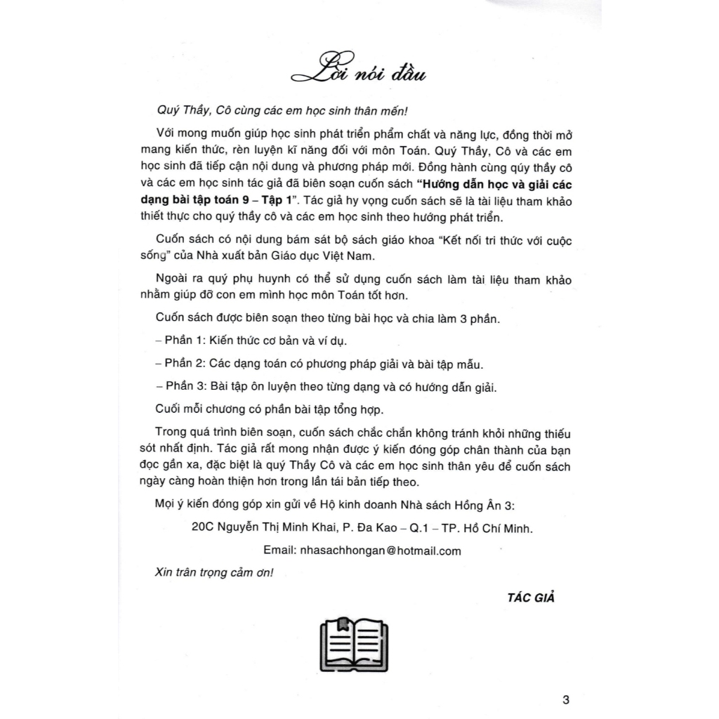 Trong quá trình biên soạn, cuốn sách chắc chắn không tránh khỏi những thiếu sót nhất định. Tác giả rất mong nhận được ý kiến đóng góp chân thành của bạn đọc gần xa, đặc biệt là quý Thầy Cô và các em học sinh thân yêu để cuốn sách ngày càng hoàn thiện hơn trong lần tái bản tiếp theo.