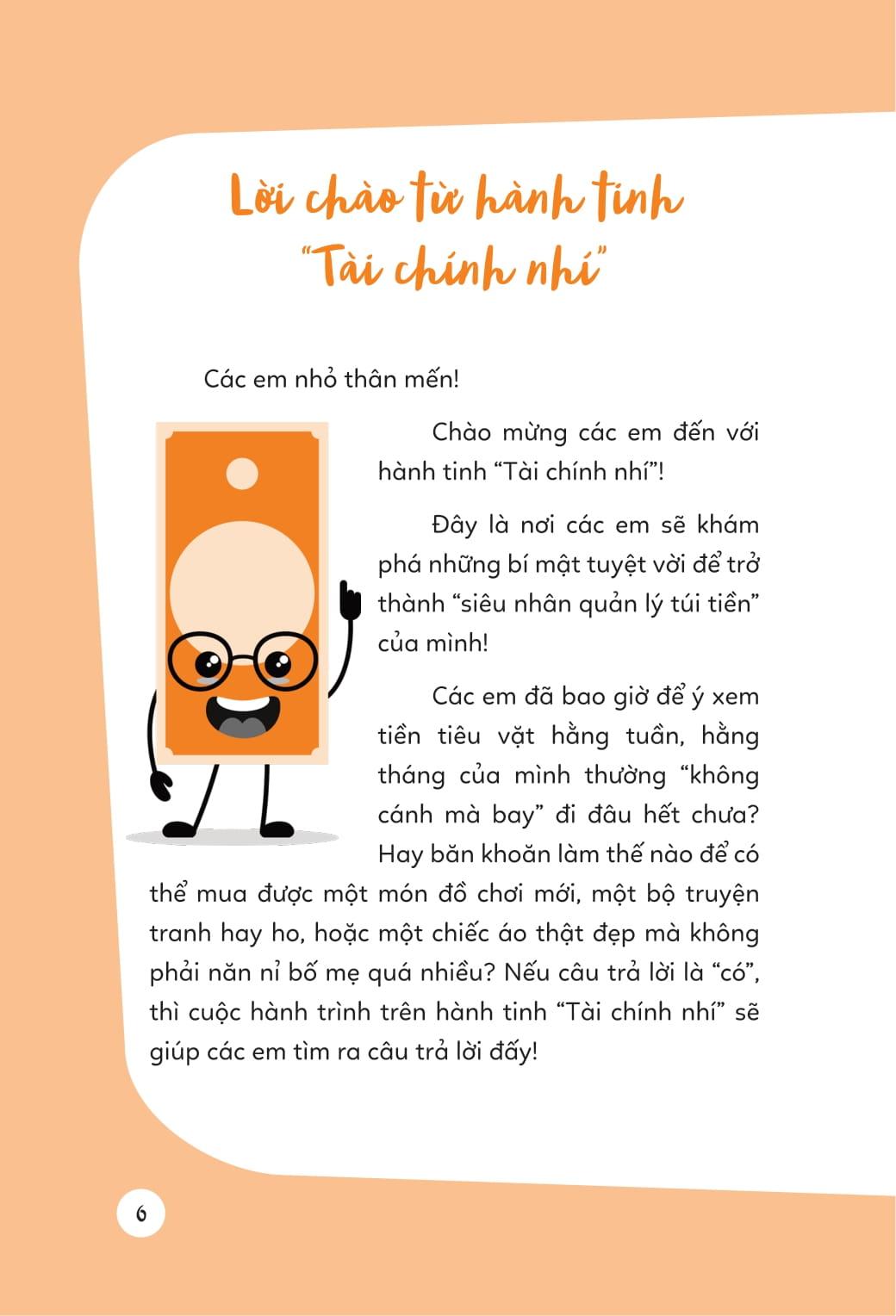 - nói “không” với nợ nần chương 4: đầu tư cho tương lai – bước đệm thành công dành dụm từ hôm nay cho ngày mai: hiểu về tiết kiệm – lãi suất – đầu tư cơ bản. phần 2: thử tài quản lý chi tiêu đây chính là điểm sáng độc đáo khiến cuốn sách trở nên vừa học vừa chơi cực kỳ lôi cuốn: trạm thử thách 1 – trắc nghiệm kiến thức tài chính nhí trạm thử thách 2 – đố vui tài chính trạm thử thách 3 – “đi chợ với 100.000 đồng” trạm thử thách 4 – nhà khởi nghiệp tí hon những thử thách này giúp các em áp dụng kiến thức tài chính vào tình huống thực tế, đồng thời phát triển kỹ năng tư duy logic, phản biện, ra quyết định, lập kế hoạch và sáng tạo – những kỹ năng “vàng” trong thế kỷ 21. tại sao cha mẹ nên chọn cuốn sách này cho con?