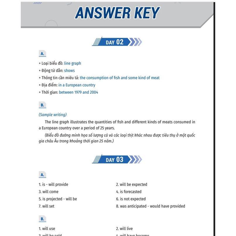- Sách cung cấp đáp án cho các bài tập, những đoạn viết và bài luận để bạn đọc tham khảo