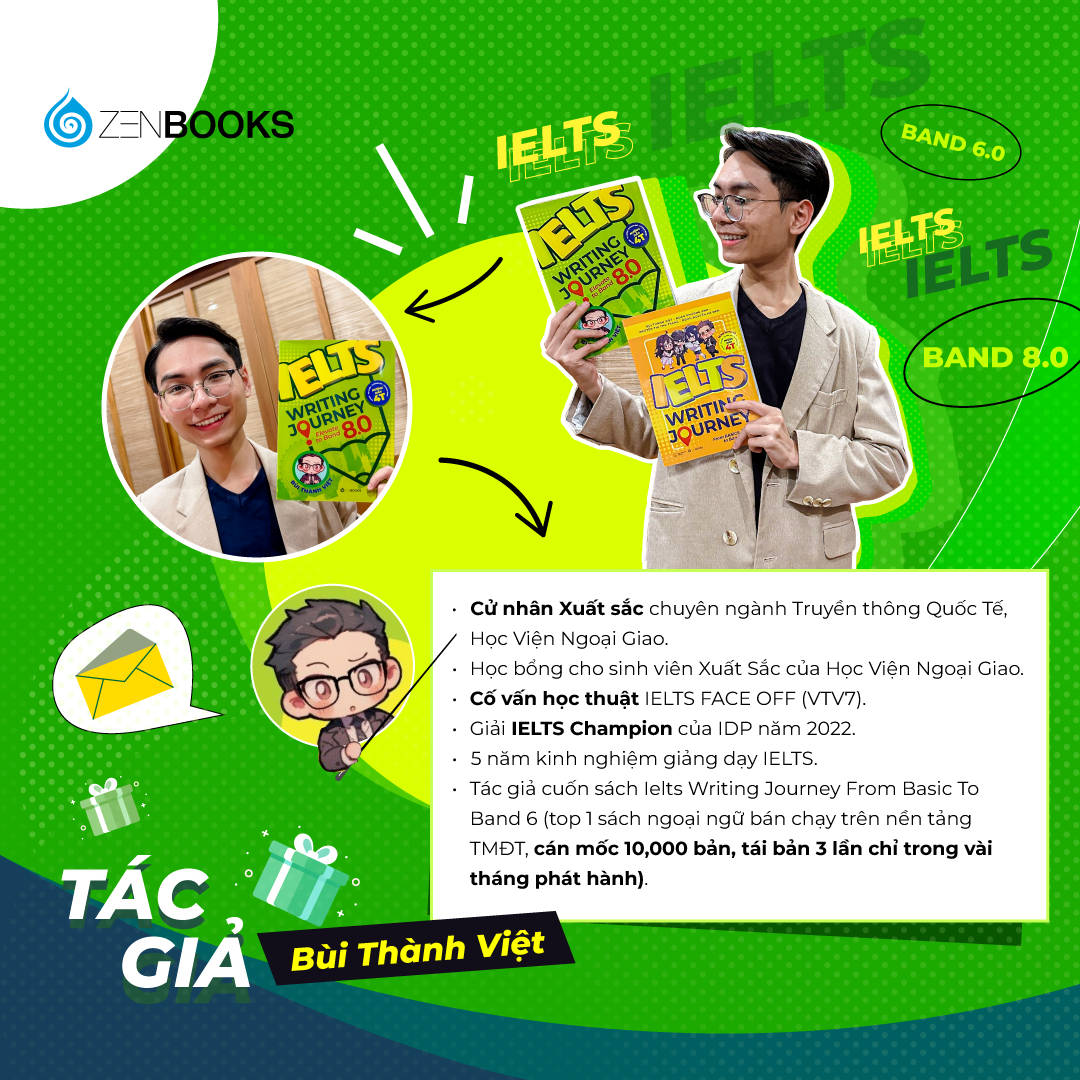 Với tác giả Bùi Thành Việt - có kinh nghiệm gần 10 lần thi, đi từ 4.0 lên 8.5 overall, xuất phát điểm không quá cao, bằng con đường tự tìm tòi, tự học hỏi - tác giả hoàn toàn hiểu được những khó khăn mà người học gặp phải trong quá trình ôn tập. Từ đó, tác giả rút ra rất nhiều công thức cần thiết và thực tiễn, đúc kết lại một cách hoàn chỉnh nhất trong cuốn sách IELTS Writing Journey: Elevate to Band 8.0.