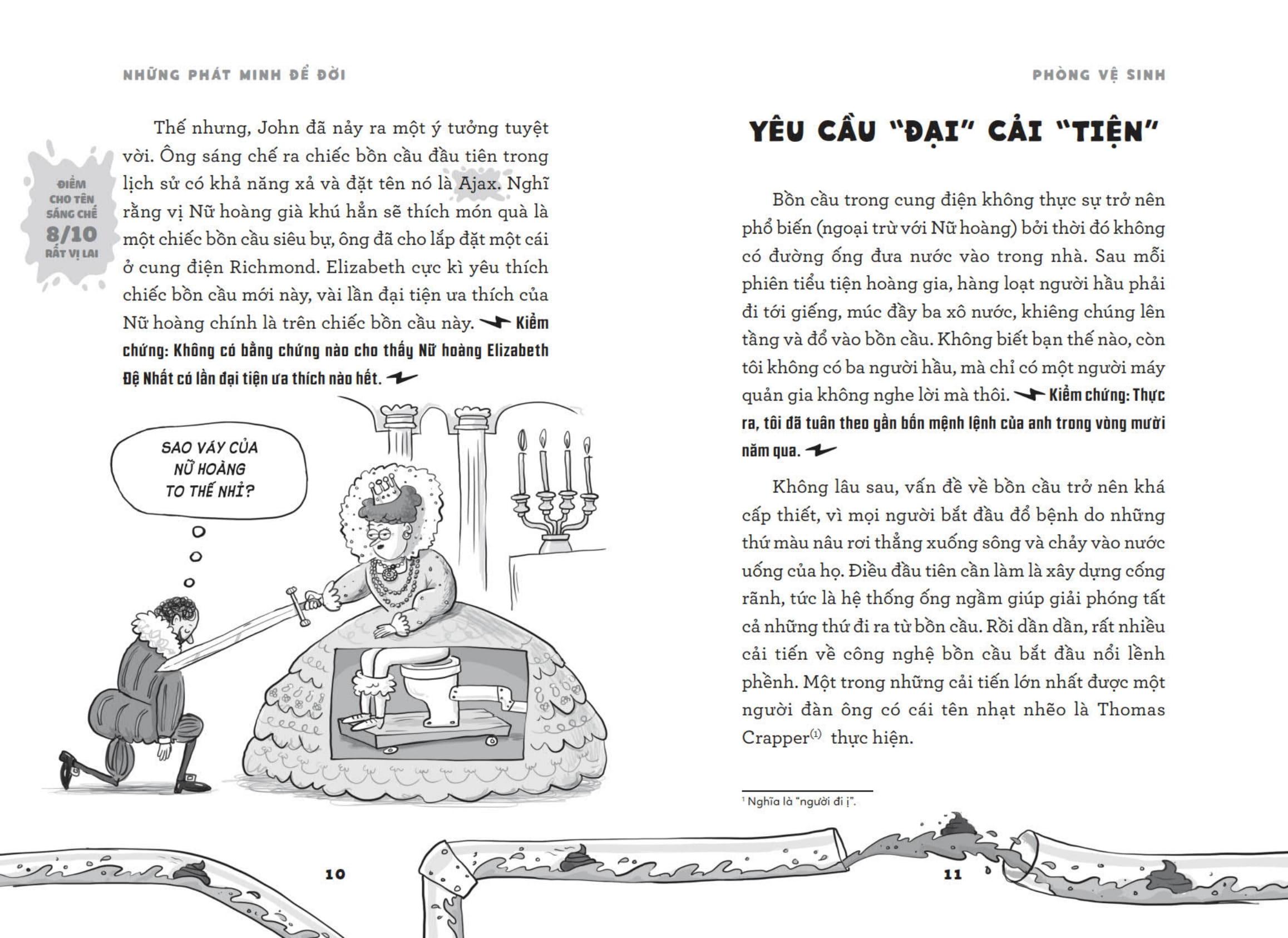 Mua tại TiktokKay’s Incredible Inventions - Những Phát Minh Để Đời Bạn đã bao giờ tự hỏi mọi thứ xung quanh m.ình đến từ đâu không? Ai là người đã nghĩ ra mấy thứ siêu việt như trò chơi điện tử, hoặc… ai là thiên tài đã “phát minh” ra trường học (phiền phức muốn xỉu)? Những Phát Minh Để Đời mang đến câu chuyện lịch sử các phát minh của loài người, ví dụ như: Tại sao người Hy Lạp cổ đại lại lau mông bằng… đĩa ăn? Chuyện “giải quyết nỗi buồn” của nữ hoàng dẫn đến… chiếc bồn cầu đầu tiên như thế nào? Làm sao một chú chó lại vô tình tạo ra… khóa dán velcro? Nào, hãy cùng khám phá 48.762.851.208 sự thật kì quặc (ước lượng thôi nhá!) về phát minh, từ NGỚ NGẨN đến KINH TỞM và thậm chí là NGUY HIỂM RỢN TÓC GÁY trong cuốn sách mới nhất của tác giả Adam Kay nhé!