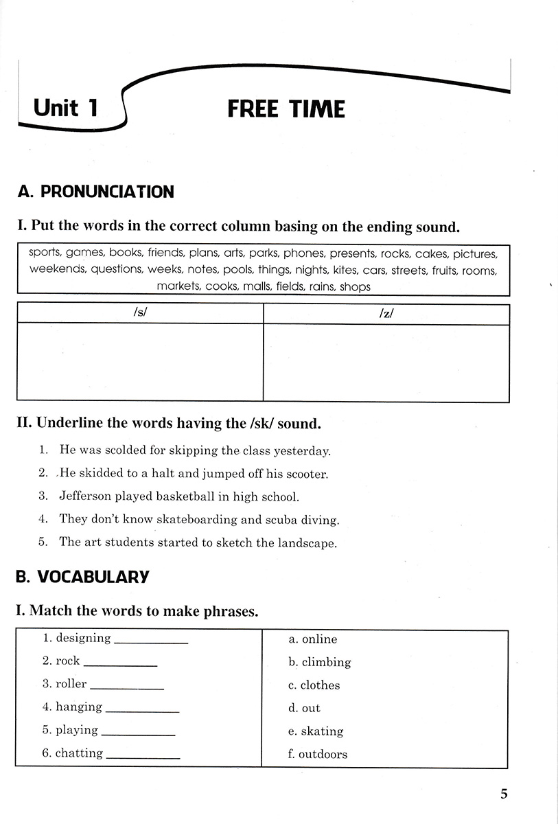 A. Pronunciation: Bao gồm các bài tập vẽ kĩ năng phát âm