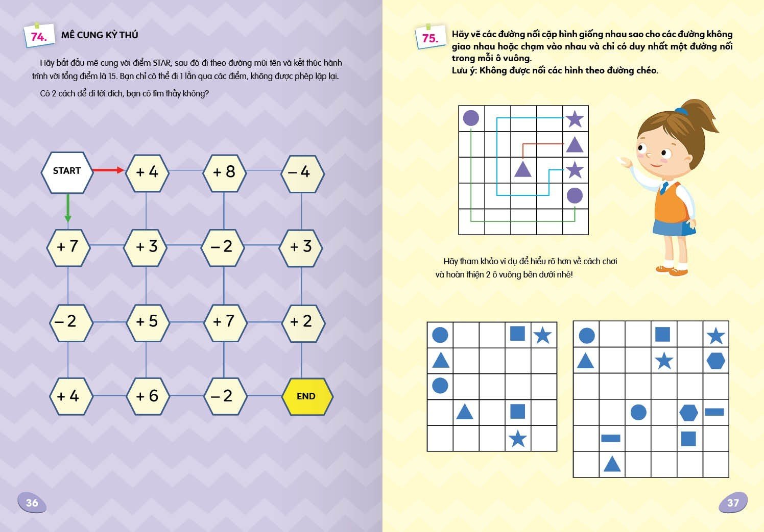 Sách - Khám phá Tiềm năng con trẻ - TRÒ CHƠI HACK NÃO Một bộ não thông minh sẽ giúp bạn tiến tới thành công nhanh hơn tất cả các yếu tố khác. Vốn dĩ, trí thông minh của con người là bẩm sinh và thực tế chỉ có khoảng 10% dân số thế giới sở hữu trí tuệ siêu phàm, 90% còn lại phải rèn giũa để thông minh hơn. Chính vì vậy, rèn luyện tư duy là giải pháp tốt nhất để tăng cường trí tuệ. "TRÒ CHƠI HACK NÃO" - là tập hợp những câu đố đòi hỏi sự rèn luyện và tập trung của bạn. Mỗi cuốn sách có những chủ đề khác nhau. - Mỗi câu đố có quy luật tính toán riêng, bạn hãy suy luận để tìm ra số cần điền vào vị trí dấu chấm hỏi. - Mỗi bức tranh đều có một điểm bất hợp lý, không theo logic, đòi hỏi bạn phải tập trung và tinh mắt. - Bạn cần vận dụng khả năng tính toán, tư duy logic để tìm ra quy luật và điền số còn thiếu vào dấu chấm. - Ban cần quan sát, suy luận logic để tìm quy luật của dãy hình, dãy số đã cho để đưa ra đáp án đúng. Tập trung hoàn toàn tâm trí cho việc giải đố - quan sát tỉ mỉ hết sức có thể, đọc từng câu chữ cẩn thận. Phải chắc chắn bạn hiểu những gì mình được yêu cầu thực hiện. Nếu vẫn không làm được thì hãy xem phần giải đố ở cuối sách. IDBooks hi vọng bộ sách sẽ được các bạn nhỏ yêu thích, đón nhận và trở thành một công cụ hữu ích cho các em trong quá trình học tập, phát triển năng lực tư duy của mình.