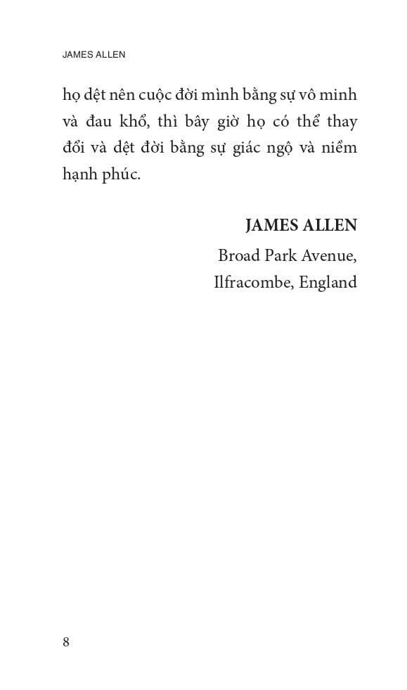 Cuốn sách khai mở cách mà tư duy định hình tính cách, hành vi, hoàn cảnh – và cuối cùng là số phận. Bằng việc làm chủ tâm trí, bạn nắm trong tay chiếc chìa khóa để: