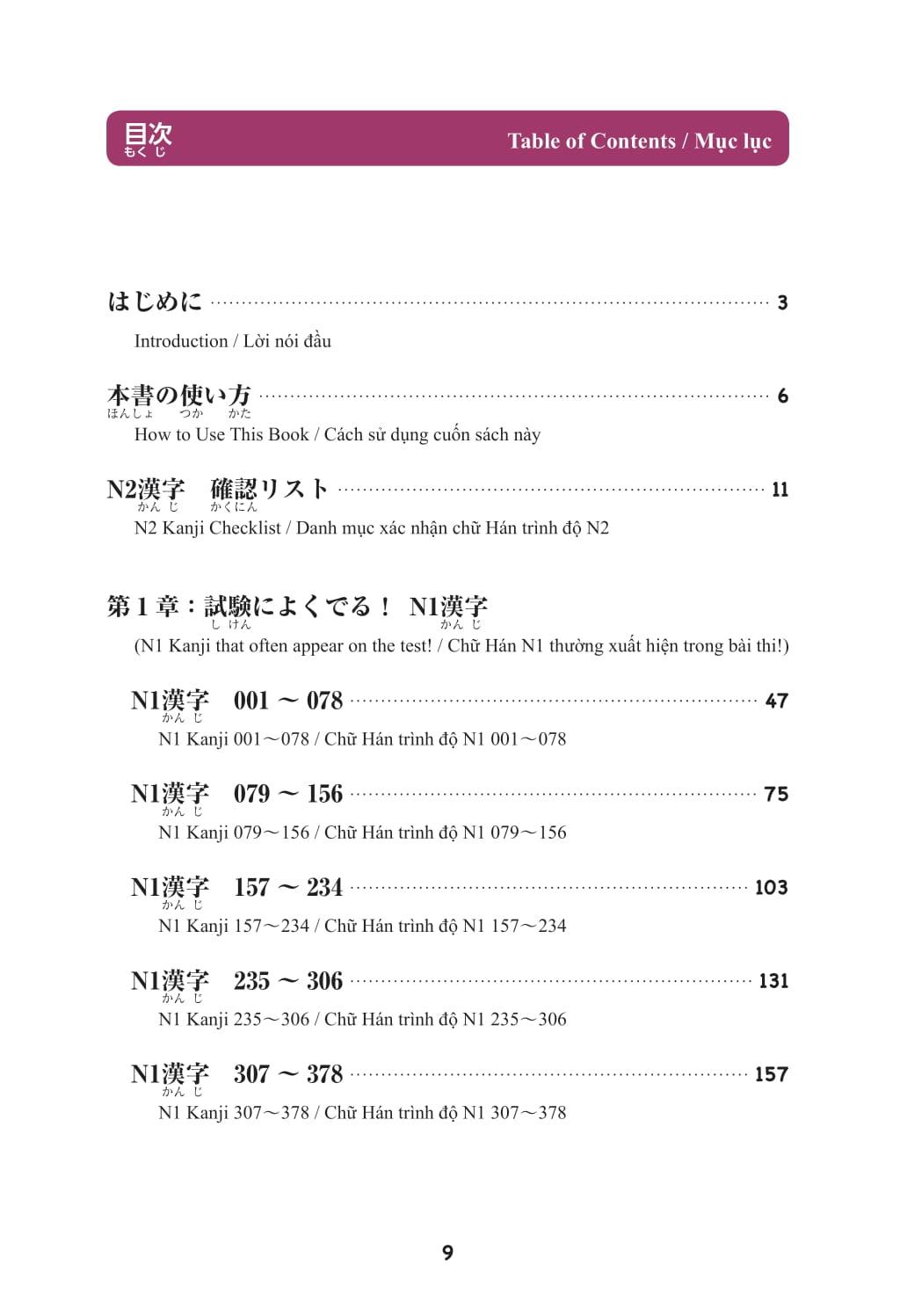 Kỳ Thi Năng Lực Nhật Ngữ - Sổ Tay Hán Tự N1 - 800 Bao gồm 800 chữ Hán tự thường được ra trong các Kỳ thi năng lực Nhật ngữ cấp độ N1. Bao gồm các đặc trưng: