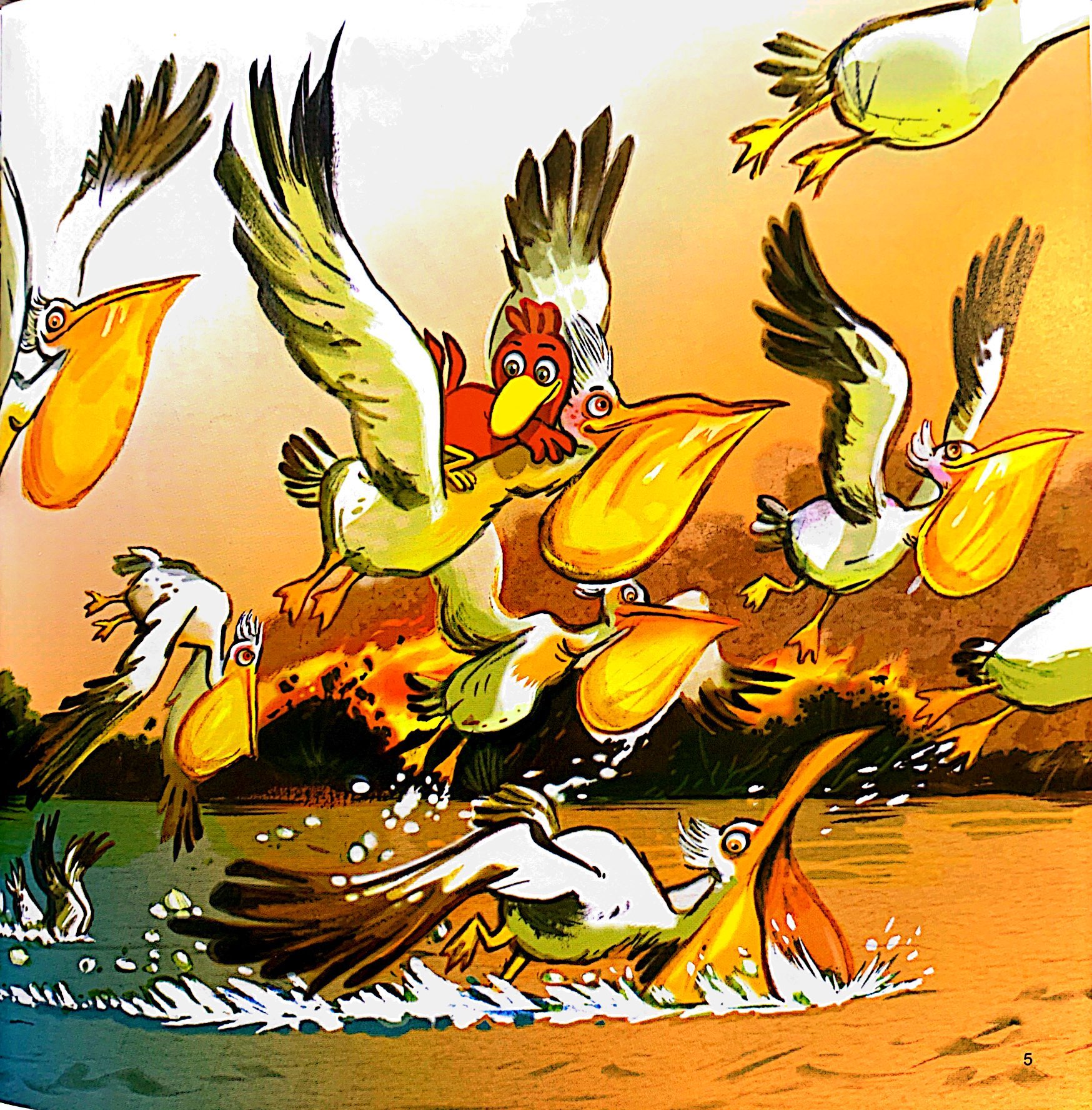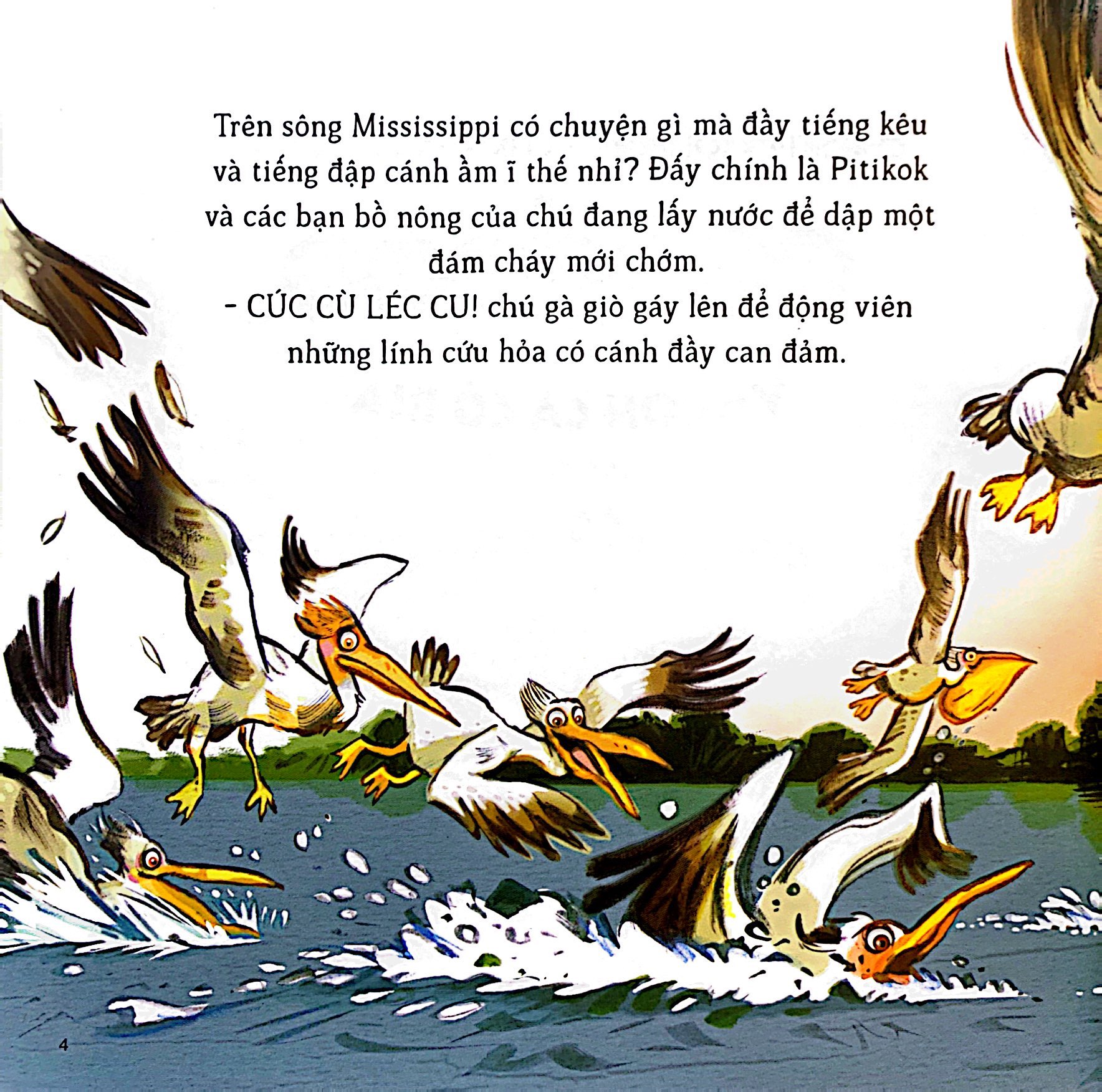 “Cúc cù léc cu!” Pitikok, chú gà giò đỏ lắm mưu mẹo, đã cứu được đúng tám quả trứng to bự bị một cơn lốc cuốn bay xuống dòng sông.