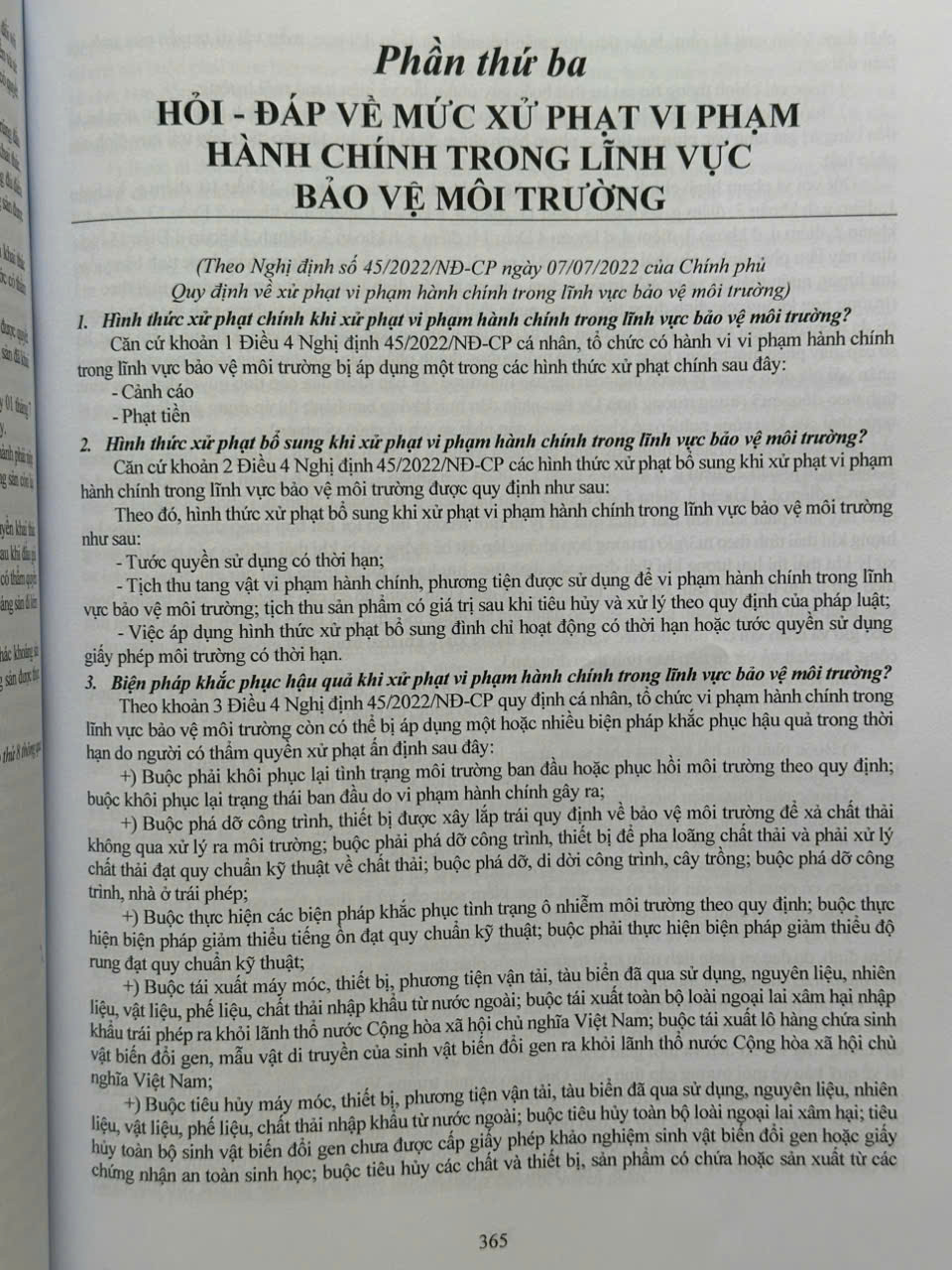 Phần thứ ba. HỎI – ĐÁP VỀ XỬ PHẠT VI PHẠM HÀNH CHÍNH TRONG LĨNH VỰC BẢO VỆ MÔI TRƯỜNG