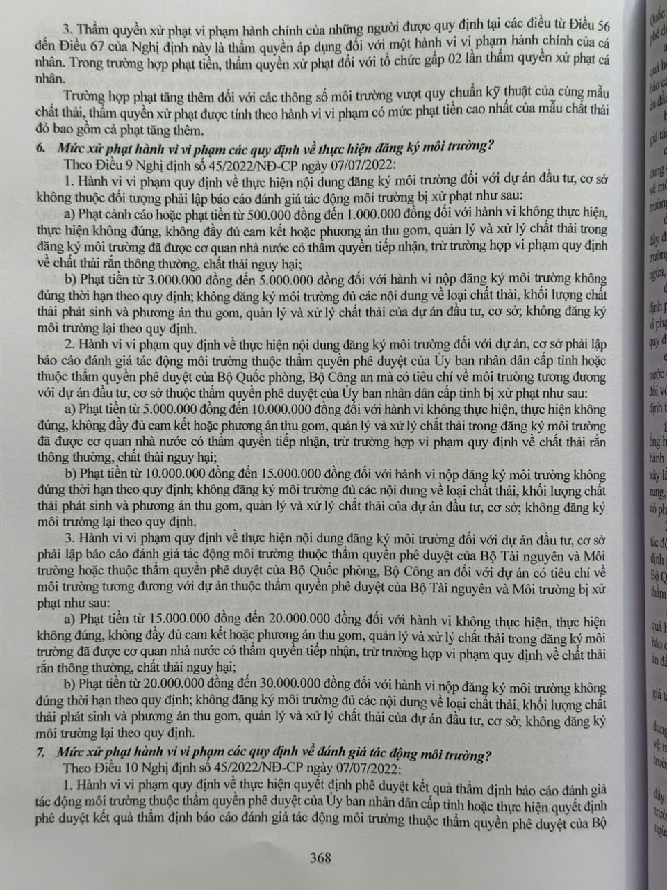 Sách Luật Bảo Vệ Môi Trường, Luật Địa Chất Và Khoáng Sản Và Văn Bản Hướng Dẫn Thi Hành, Quy Định Về Xử Phạt Vi Phạm Hành Chính Trong Lĩnh Vực Bảo Vệ Môi Trường