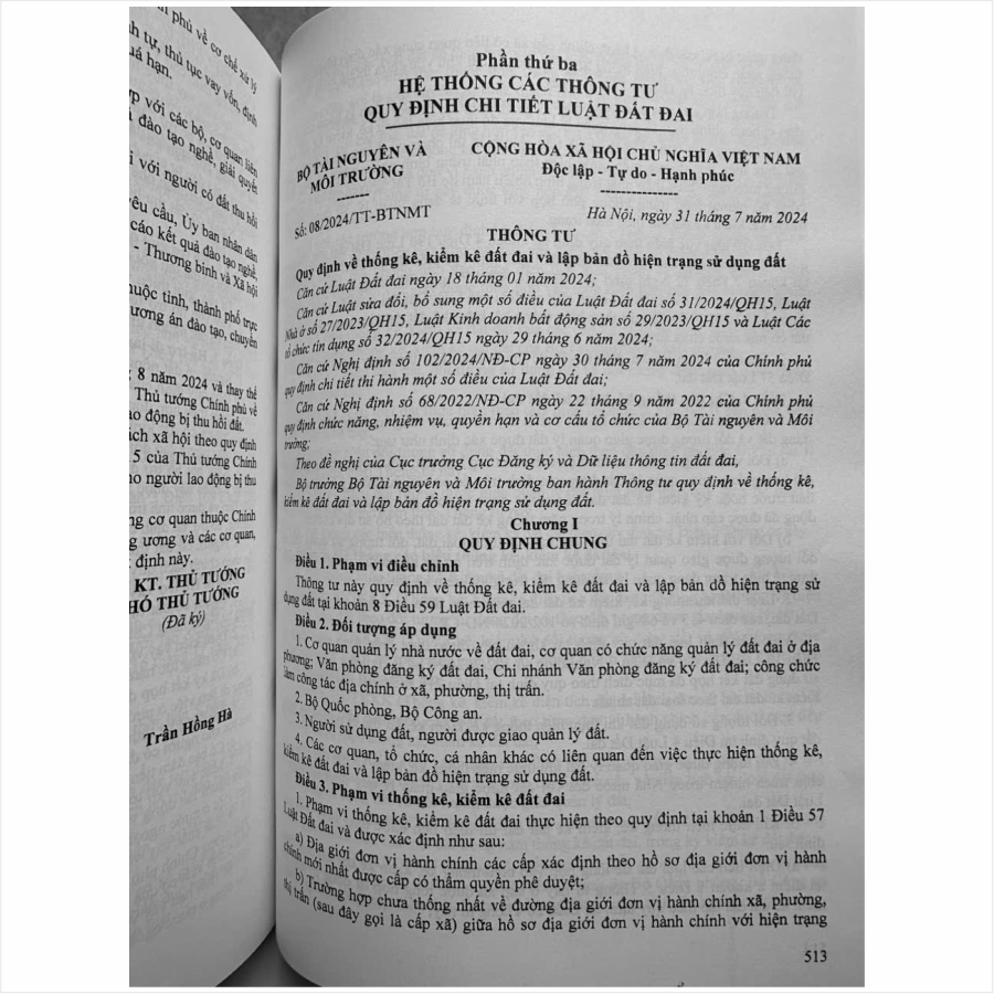 – Thông tư số 08/2024/TT-BTNMT ngày 31 tháng 7 năm 2024 của Bộ Tài nguyên và Môi trường Quy định về thống kê, kiểm kê đất đai và lập bản đồ hiện trạng sử dụng đất;