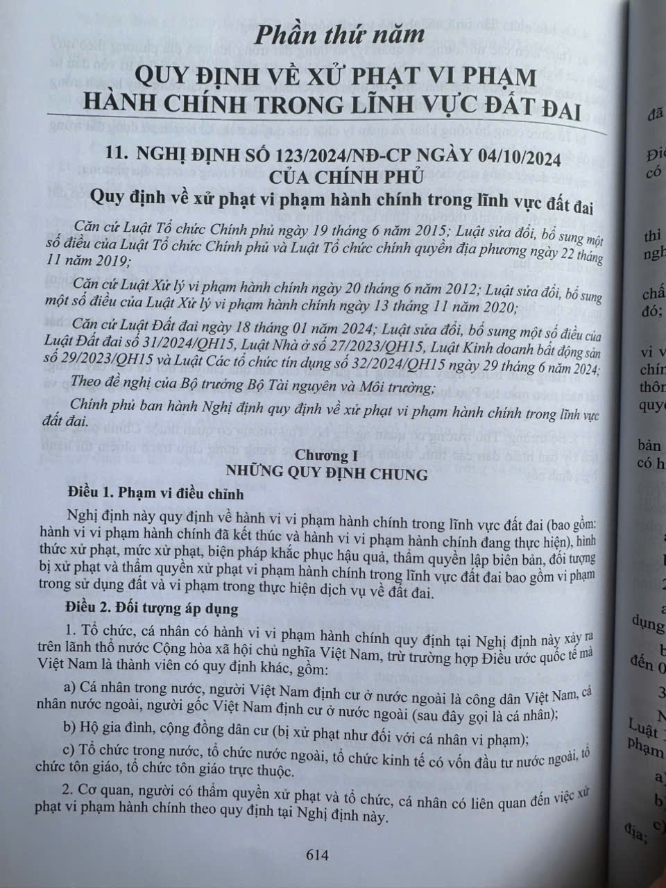 – Nghị định số 123/2024/NĐ-CP ngày 04/10/2024 Quy định về xử phạt vi phạm hành chính trong lĩnh vực đất đai