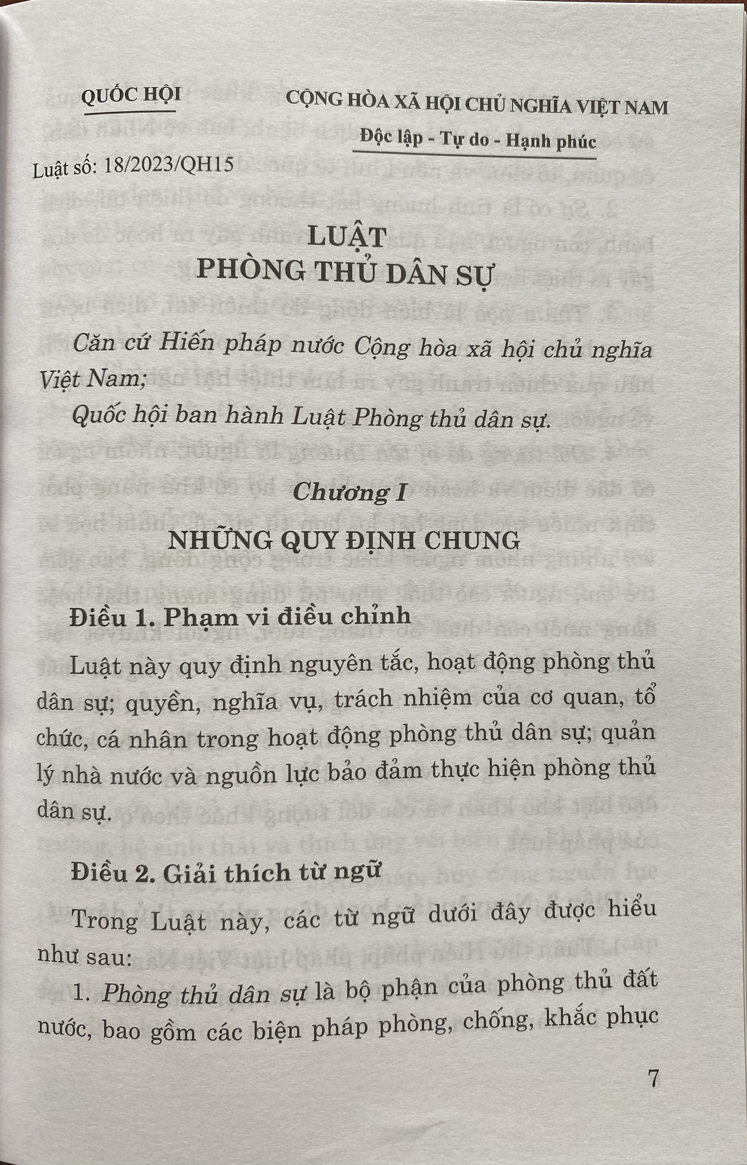 Mua tại TiktokLuật Phòng Thủ Dân Sự được ban hành theo luật số 18/2023/QH 15 ( có hiệu lực thi hành từ ngày 01/07/2024)