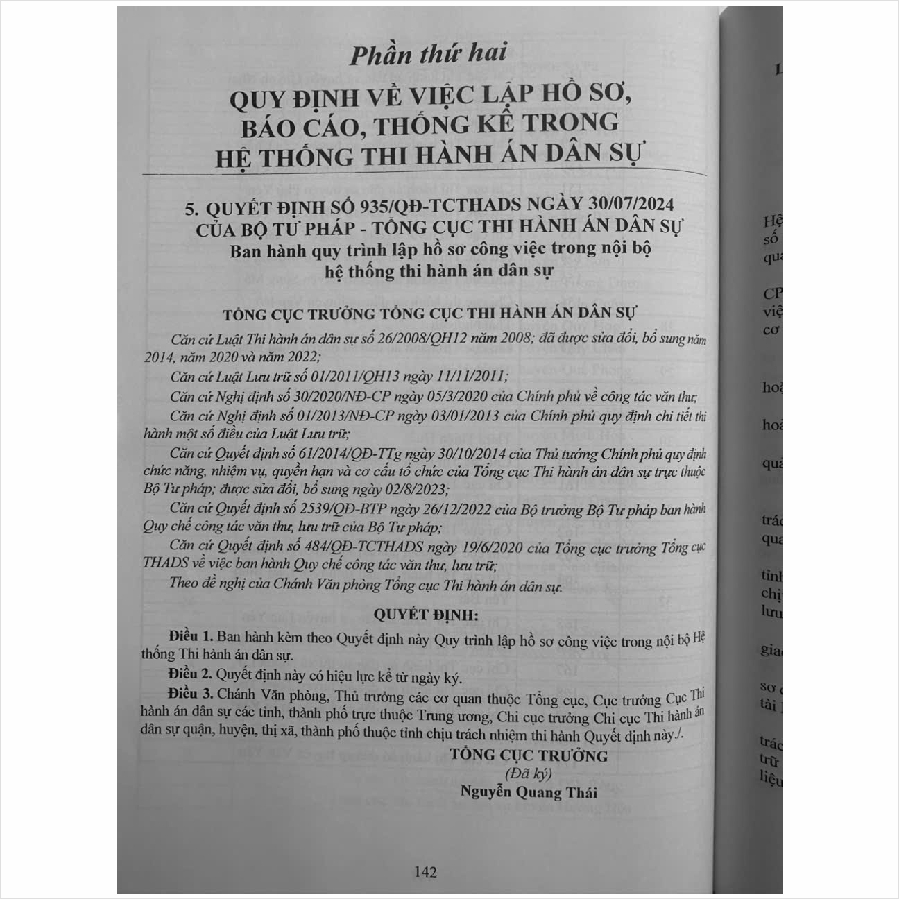 – Quyết định số 935/QD-TCTHADS ngày 30/07/2024 Ban hành quy trình lập hồ sơ công việc trong nội bộ hệ thống thi hành án dân sự…