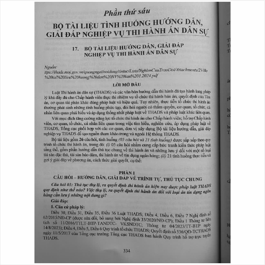 Phần thứ sáu. BỘ TÀI LIỆU TÌNH HUỐNG HƯỚNG DẪN, GIẢI ĐÁP NGHIỆP VỤ THI HÀNH ÁN DÂN SỰ