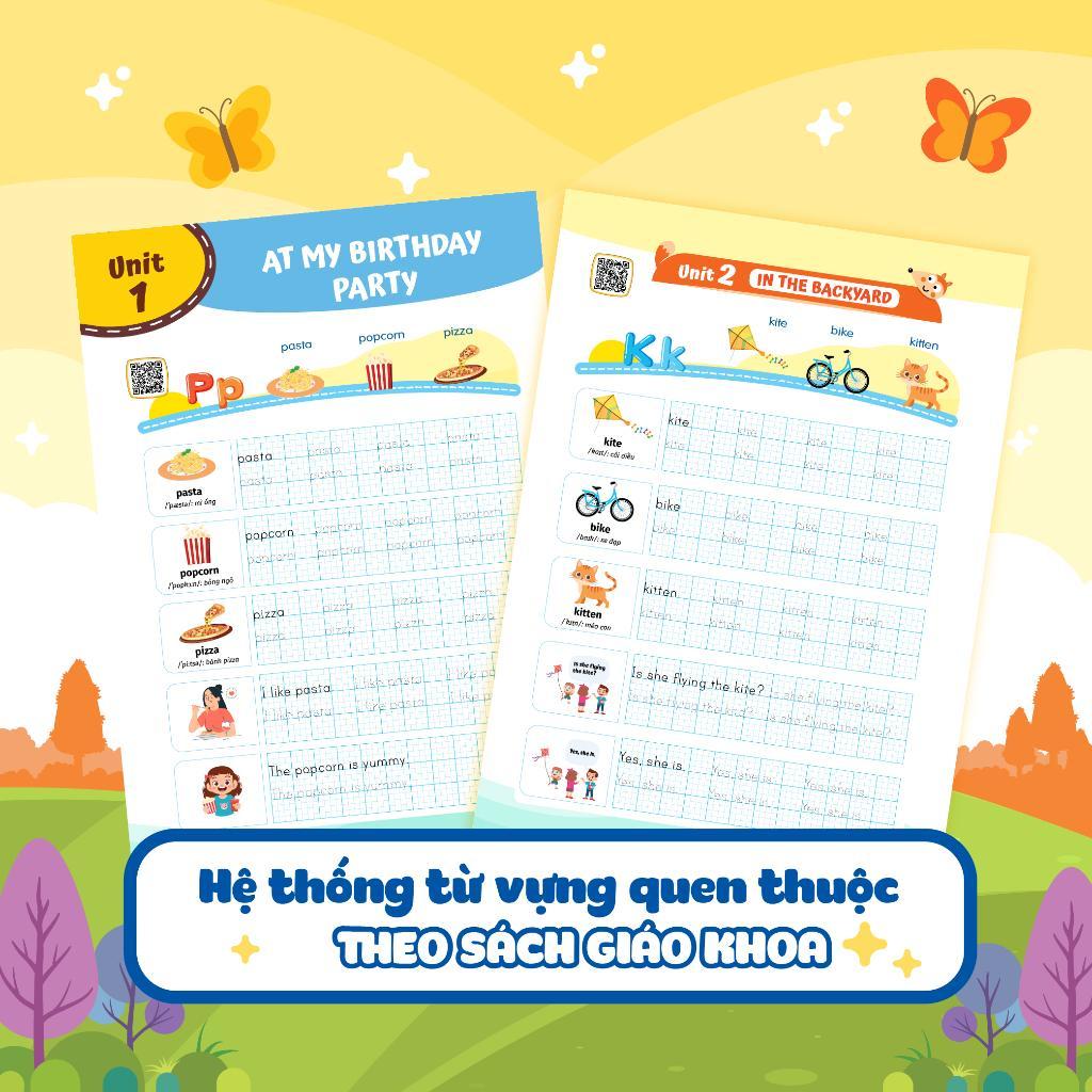 Kèm sau mỗi bài học là những hoạt động thực hành thú vị, các con vừa được ôn lại từ vựng hiệu quả, vừa được thoải mái thư giãn.