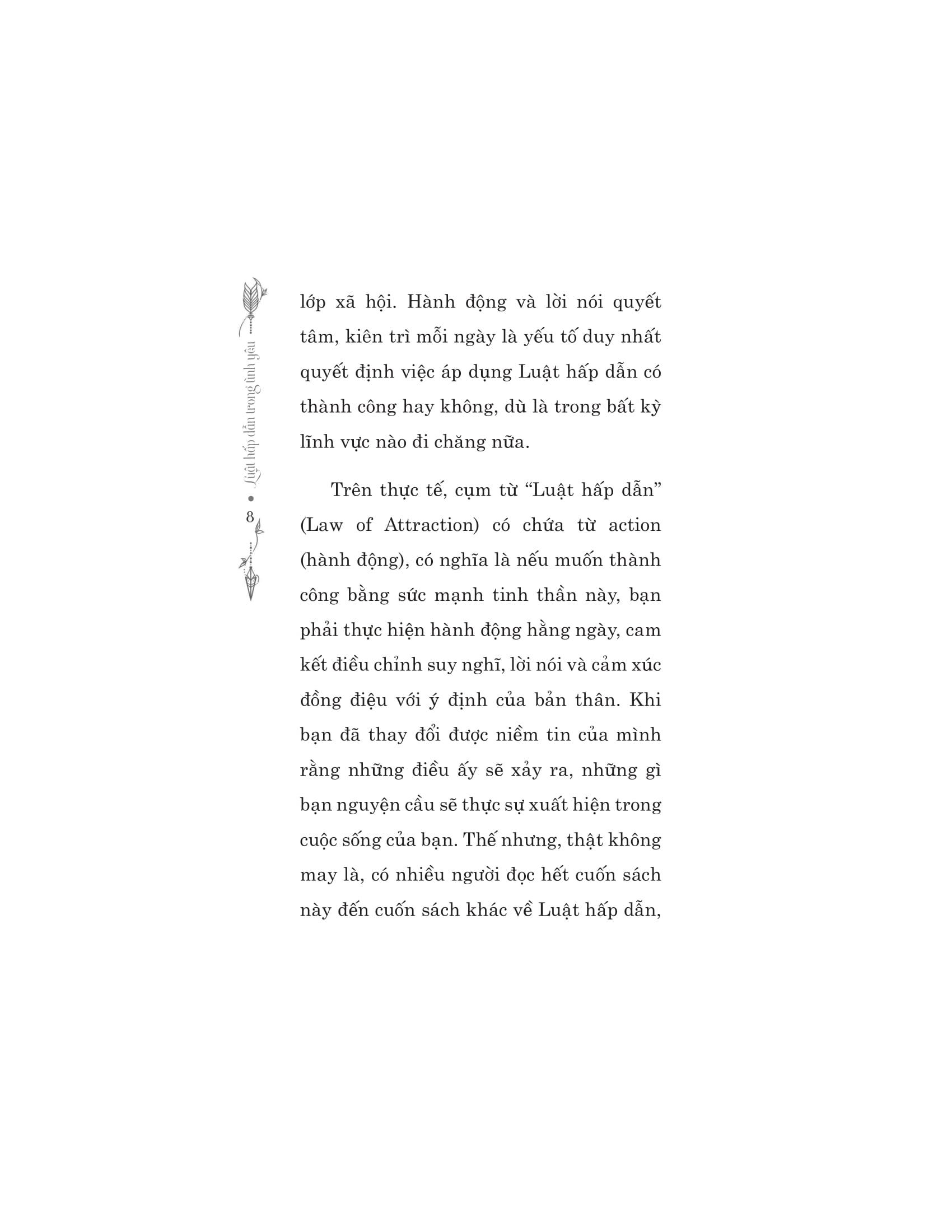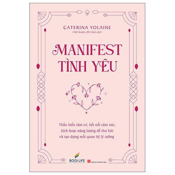 Manifest Tình Yêu Là chủ đề được bàn tán bởi đông đảo người dùng trên các trang mạng xã hội, luật hấp dẫn (Law of Attraction) - một triết lý cho rằng những suy nghĩ tích cực mang năng lượng tích cực sẽ giúp thu hút những kết quả tích cực - được phân tích và ứng dụng trong nhiều lĩnh vực, kể cả tình yêu. Hàm chứa các phương pháp thực hành cùng những câu chuyện thành công đã được kiểm chứng, Manifest Tình Yêu giúp bạn khai thác sức mạnh của cảm xúc và lời nói, hướng dẫn cụ thể về cách bày tỏ ý định rõ ràng, đưa ra lời khẳng định tích cực và vận dụng các công cụ một cách nhặt quán để "manifest" thành công một mối quan hệ nghiêm túc và dài lâu. Cuốn sách ManifestTình Yêu gồm 5 chương với từng nội dung sau: Chương 1: Những đặc điểm lý tưởng mong muốn ở người bạn đời Chương 2: 222 lời khẳng định và cách sử dụng chúng hiệu quả Chương 3: Ba kịch bản trực quan hoá cảm xúc để thu hút tình yêu và sự lãng mạn Chương 4: Q&A về tình yêu Chương 5: Sử dụng luật hấp dẫn để thu hút người bạn đời của bạn. Cuốn sách đã giúp rất nhiều người tìm được người bạn đời lý tưởng của m.ình. Hãy để nó giúp bạn trong hành trình tìm kiếm một nửa hoàn hảo của m.ình. Nếu bạn muốn những ước nguyện về tình yêu đích thực và lâu dài của m.ình trở thành hiện thực hãy biến cuốn sách này thành một trợ thủ đắc lực. Về tác giả Caterina Yolaine là một tác giả chuyên viết về lĩnh vực phát triển bản thân và tâm linh, đặc biệt nổi tiếng với những tác phẩm liên quan đến Luật Hấp Dẫn (Law of Attraction). Bà đã dành hơn 30 năm để chia sẻ kiến thức siêu hình về Luật Hấp Dẫn thông qua các cuốn sách, video và tài liệu thu âm. Một trong những tác phẩm nổi bật của bà là Manifest Your Millions, được đánh giá là một trong những cuốn sách bán chạy nhất về chủ đề này. Tại Việt Nam, cuốn sách Luật Hấp Dẫn Trong Tình Yêu của Caterina Yolaine đã được dịch và xuất bản bởi NXB Thanh Niên vào năm 2023, với sự hợp tác của 1980 Books và dịch giả Phí Mai. Cuốn sách cung cấp những phương pháp thực hành và hiểu biết sâu sắc về tâm linh, giúp người đọc áp dụng Luật Hấp Dẫn để thu hút tình yêu đích thực.