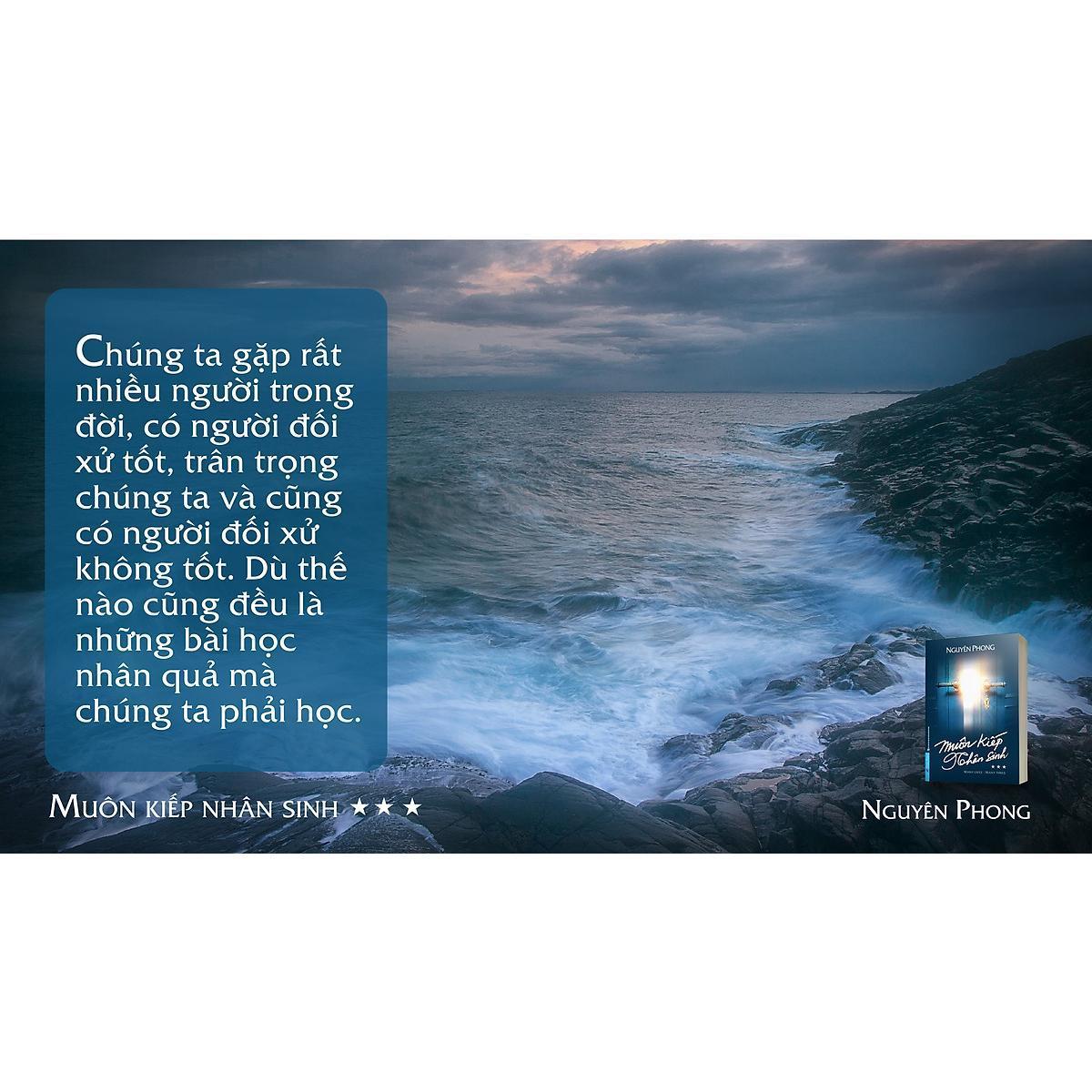 Thông qua 10 chương sách đan xen giữa quá khứ và hiện tại, giữa kể chuyện và lý luận, giữa hiện thực và huyền ảo, cuốn sách gợi ra những suy tư về vị thế và vai trò của con người nhỏ bé giữa vũ trụ bao la. Sau cùng, bảo toàn và phát huy tinh thần của hai tập trước, “Muôn Kiếp Nhân Sinh – tập 3”tiếp tục là một nỗ lực góp phần đưa con người về nẻo thiện, hướng đến một nhân loại hòa bình, bác ái, vị tha, bất kể màu da, quốc tịch và tôn giáo.