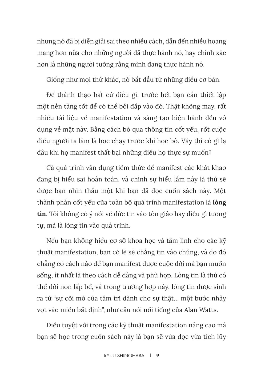 - Thói quen đơn giản hằng ngày giúp tái lập trình niềm tin và đẩy nhanh kết quả. Nghệ thuật manifest toàn diện sẽ mang đến một lộ trình rõ ràng để bạn thay đổi tư duy, sức mạnh tiềm thức và nâng cao tần số rung động của bản thân trong mọi khía cạnh cuộc sống từ đó thay đổi thực tại của chính m.ình.