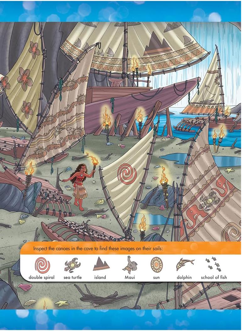 Dreams do come true with Ariel, Moana, Rapunzel, Belle, Jasmine, Cinderella, Tiana, and Mulan! Search for hidden surprises in 8 busy scenes, then turn to the back of the book for even more Look and Find challenges.