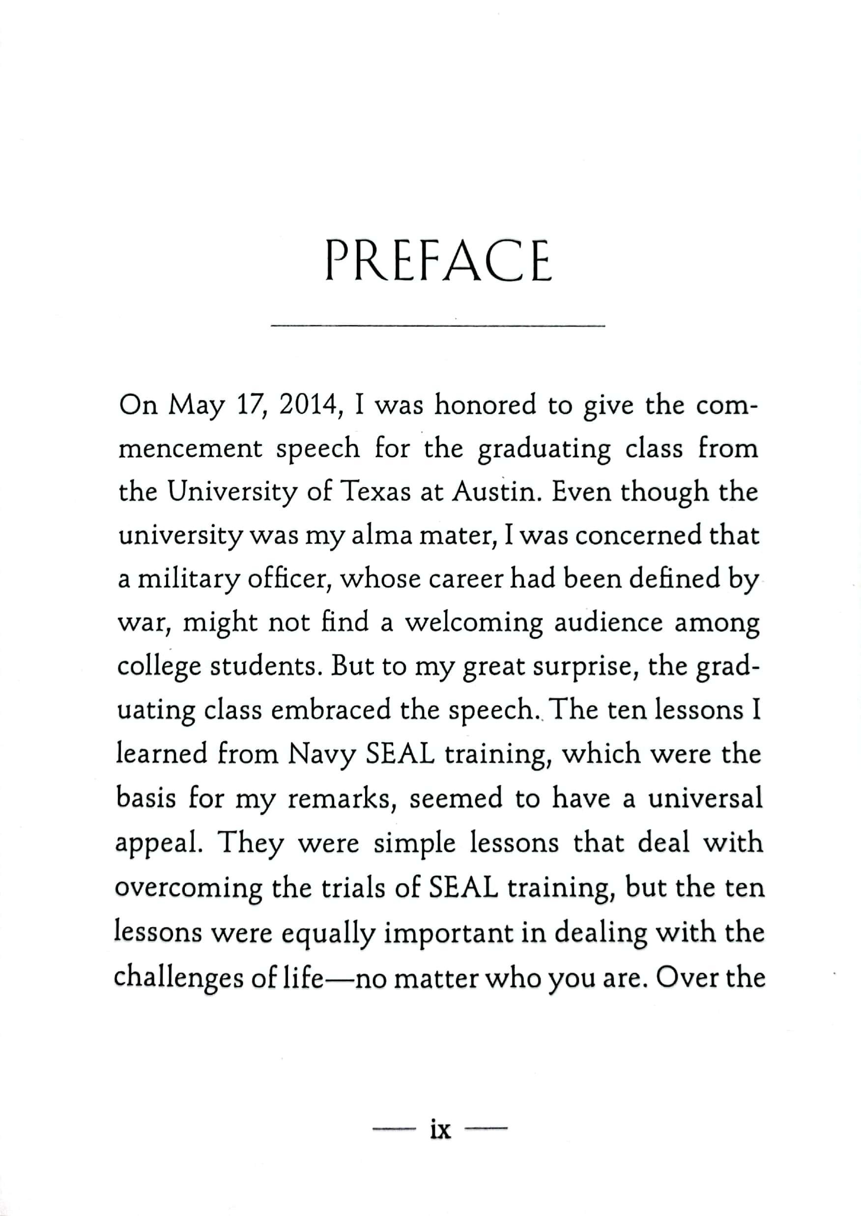 In Make Your Bed, Admiral William H. McRaven shares 10 life lessons he learned during his Navy Seal training that helped him overcome challenges not only in his long Naval career, but also throughout his life.