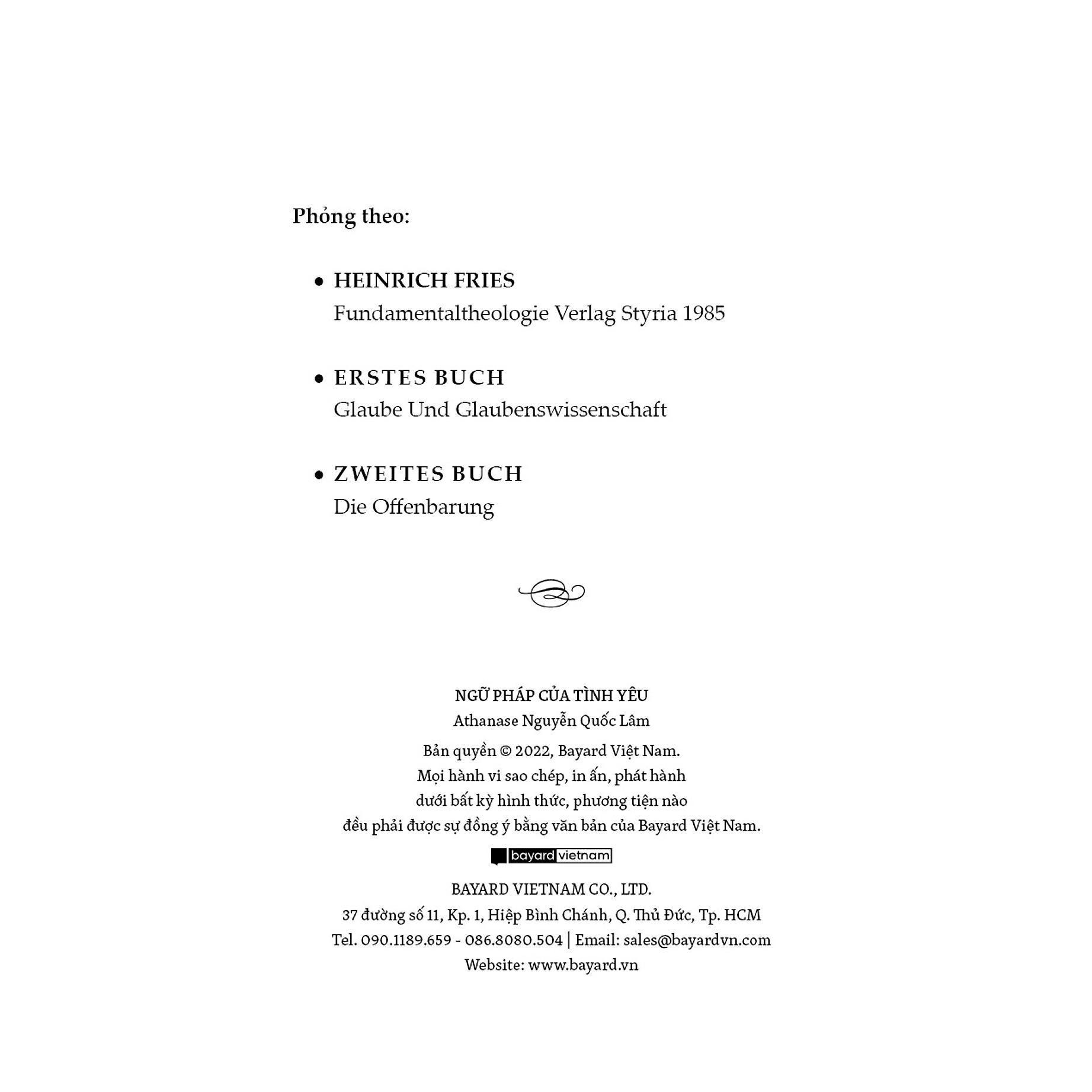 “Ngữ Pháp của tình yêu” được biên soạn như một phỏng tác dựa trên cuốn I và II trong tác phẩm “Thần Học Cơ Bản” (Fundamentaltheologie) của Heinrich Fries, với mong ước cho thấy Đức Giêsu Kitô vừa là tột đỉnh của niềm tin vào Thiên Chúa trên bình diện nhân linh vừa là sự hoàn tất mạc khải tình yêu của Thiên Chúa dành cho nhân loại. Nói đúng hơn, Đức Kitô chính là Lời trọn vẹn của Thiên Chúa (Wort) và cũng chính Đức Kitô mang lấy mọi người và từng người chúng ta trong Lời Đáp (Antwort) trọn vẹn của Ngài trên Thập Giá.
