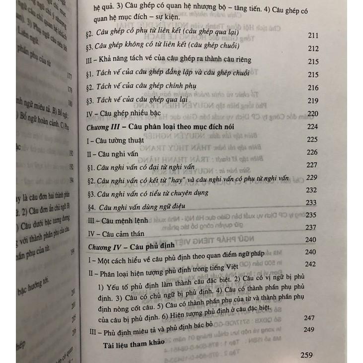 Nội dung gồm có: Phần một. Cấu tạo từ Phần hai. Từ loại tiếng Việt Phần ba. Cụm từ Chương I. Khái quát về cũng từ Chương II. Cụm danh từ Chương III. Cụm động từ Chương IV. Cụm tính từ Phần bốn. Câu Chương I. Câu đơn Chương II. Câu ghép Chương III. Câu phân loại theo mục đích nói Chương IV. Câu phủ định Tác giả: Diệp Quang Ban, Hoàng Văn Trung Số trang: 192+260 Xuất bản: 2025 Nhà xuất bản: Giáo dục Việt Nam Công ty phát hành: Nxb Giáo dục Việt Nam NTBOOKS Chắp cánh tri thức - Vững bước tương lai