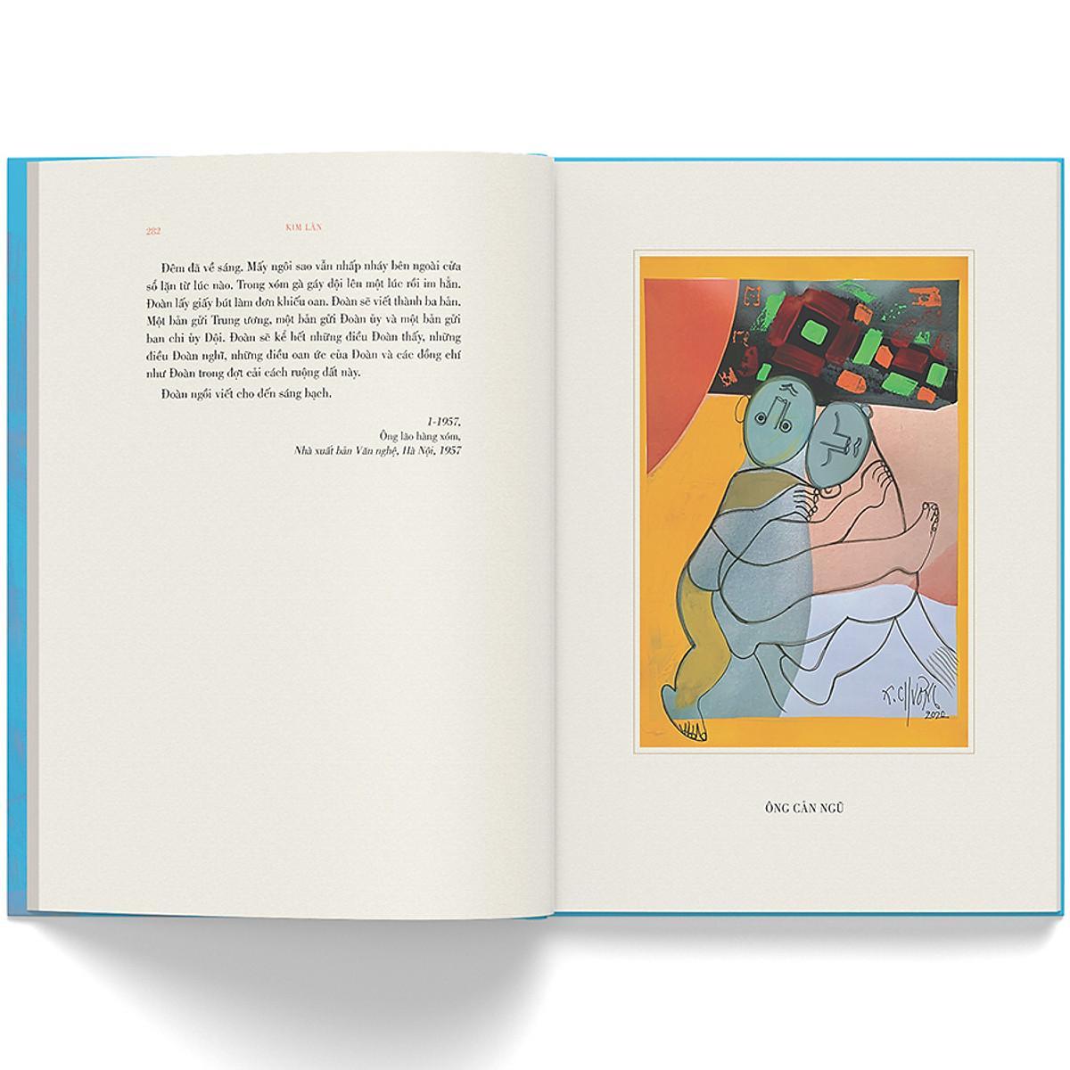 Ấn phẩm mới mang tênNgười kép giàcó một điều vô cùng đặc biệt. Đó là những phụ bản của họa sỹ danh tiếng Thành Chương. Họa sỹ Thành Chương là con trai nhà văn Kim Lân. Nhưng không phải vì lý do đó mà họa sỹ đã vẽ những phụ bản hiện đại nhưng lại chứa đựng tinh thần của những câu chuyện cha mình đã viết kể cả những câu chuyện từ khi họa sỹ chưa ra đời. Giữa hai văn bản khác nhau của chữ và màu sắc, hình khối, giữa hai thế hệ khác nhau nhiều điều nhưng ta vẫn thấy một cây cầu bắc qua hai bờ của sự khác biệt đó. Nhưng đó chỉ là sự khác biệt của thời gian và hình thức, còn những trụ cầu để bắc cây cầu ấy là Cái đẹp và Tư tưởng. Cũng như thời đại của những tác phẩm Kim Lân và con người Kim Lân có rất nhiều khác biệt với thời đại của những người đang đọc Kim Lân, nhưng sự yêu quí văn chương Kim Lân và sự kính trọng con người Kim Lân của bạn đọc thời nay và sau này lại được bắc bằng một cây cầu bởi những trụ cầu như thế.