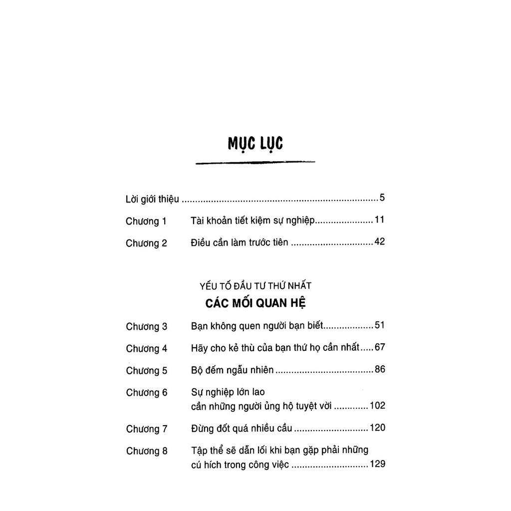 - Lặp lại quá trình trên với công việc mới; Nếu bạn thấy quy trình 9 bước trên quen-quen thì chắc hẳn bạn đang gặp khủng hoảng trong công việc. Phải chăng vì công việc quá nhạt nhẽo, nền kinh tế suy thoái hay vì vị sếp nào đó không chịu “hiểu” bạn? Nếu không muốn nhảy việc và tiếp tục quy trình trên, hãy tạm dẹp đi vô vàn lý do và bắt đầu từ việc cải thiện chính mình. Chỉ cần đầu tư đúng cách vào bốn yếu Mối quan hệ, Kỹ năng, Phẩm chất và Nhiệt huyết theo hướng dẫn của Jon Acuff, bạn sẽ thoát khỏi những bế tắc trong công việc và bắt đầu ngày thứ Hai mỗi tuần với niềm hứng khởi tuyệt vời. Công ty phát hànhtAlphabooks Tác giảtJon Acuff Ngày xuất bảnt11-2017 Kích thướct 14 x 20.5 cm Nhà xuất bảntNhà Xuất Bản Lao Động Xã Hội Dịch GiảtThảo Nguyên, Kim Ngân Loại bìatBìa mềm Số trangt386 Gooda tin rằng cuốn sách sẽ mang lại kiến thức thật bổ ích cùng những trải nghiệm thật tuyệt vời, hy vọng đây sẽ là 1 cuốn sách quý trên kệ sách của bạn! QUYỀN LỢI KHÁCH HÀNG KHI MUA SÁCH TẠI SHOP GOODA THƯ VIỆN SÁCH QUÝ: