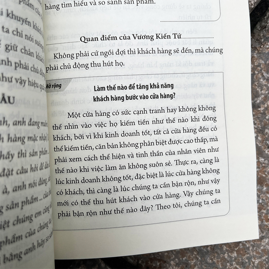Tiếp theo, nội dung cuốn sách bám sát sự biến đổi của thị trường. Như chúng ta đã biết, trong những năm gần đây, thị trường bán lẻ có sự thay đổi vô cùng lớn. Ngành công nghệ điện tử phát triển mạnh, nhiều thương hiệu mới xuất hiện, người tiêu dùng ngày một thông thái và am hiểu hơn, việc kinh doanh hàng tiêu dùng lâu dài ngày càng trở nên khó khăn, điều đó đã đặt ra yêu cầu ngày càng cao đối với nhân viên bán lẻ. Chúng ta cần tập trung vào yêu cầu của người tiêu dùng, cung cấp cho họ nhiều trải nghiệm giá trị và cụ thể hơn. Do đó, tác giả sẽ đi sâu vào phân tích tâm lí và cảm nhận của khách hàng nhiều hơn.
