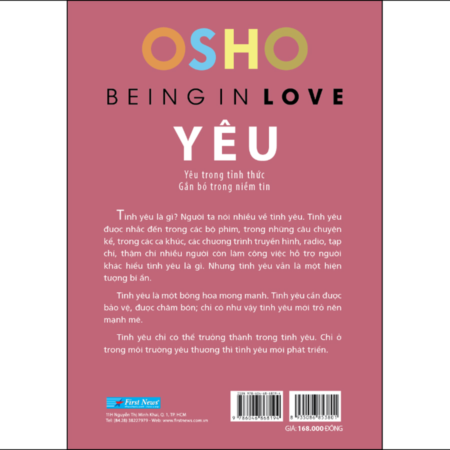 Sách OSHO Yêu - Being In Love - Yêu Trong Tỉnh Thức ------------ “YÊU” TRONG TỈNH THỨC VỚI OSHO Một chỉ dẫn “yêu không sợ hãi” đầy ngạc nhiên từ bậc thầy tâm linh
