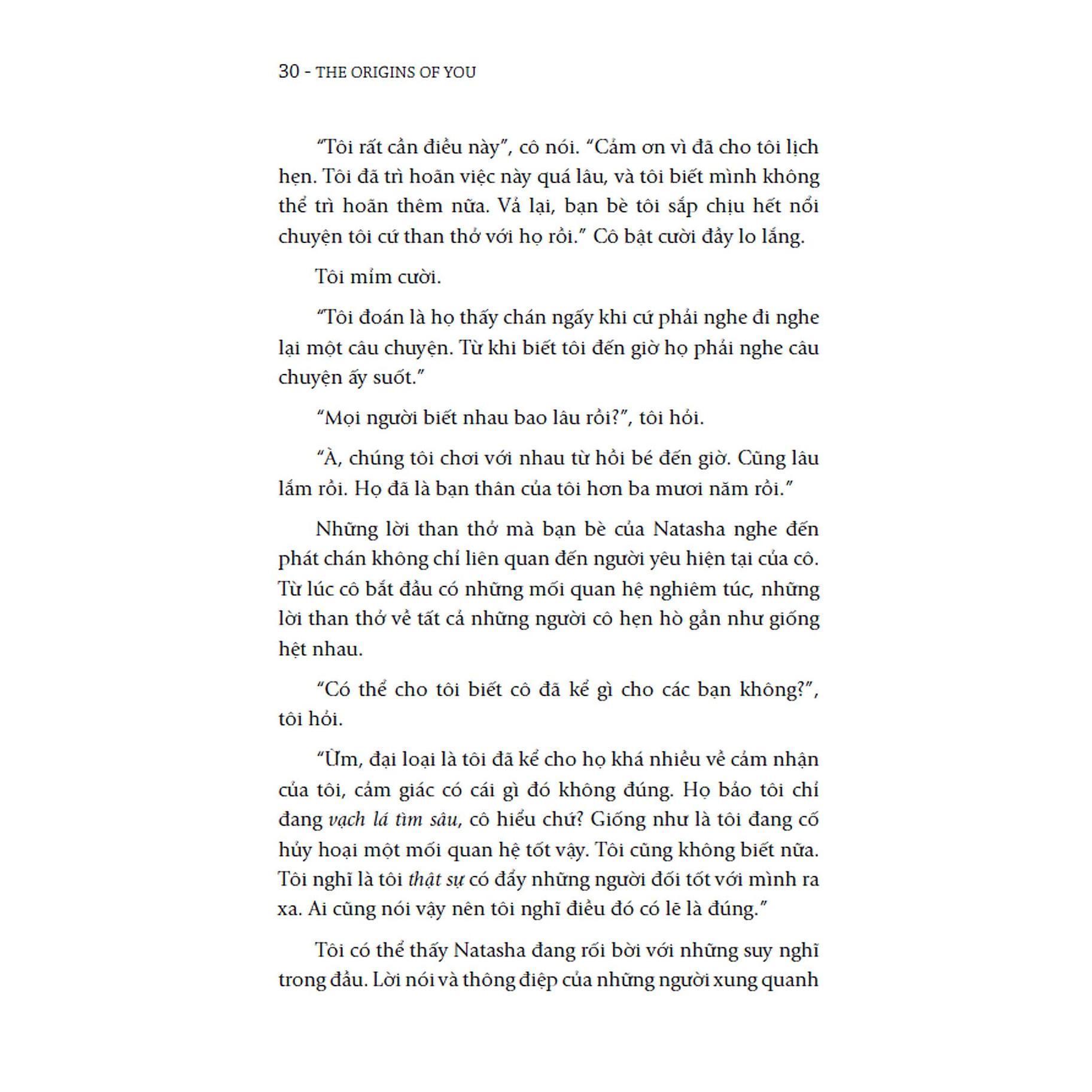 Qua từng chương sách, Vienna Pharaon sẽ dẫn dắt chúng ta khám phá từng loại trong số các vết thương do câu chuyện cội nguồn gây ra. Đồng thời, cô cũng hướng dẫn bạn chữa lành vết thương của mình với phương pháp Chữa lành tận gốc gồm bốn bước: xác định vết thương, bằng chứng về nó, nỗi tiếc thương đi kèm với nó, và cuối cùng là thực hiện những thay đổi lâu dài để không lặp lại những khuôn mẫu mà bạn vẫn cố phá vỡ trong các mối quan hệ ở tuổi trưởng thành.